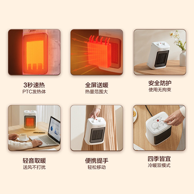 Обогреватели Midea теплый ветровой аппарат на рабочем столе небольшой офис -энергия, экономная энергия, сжимая горячее теплое воздух портативное общежитие, артефакт сухой одежды