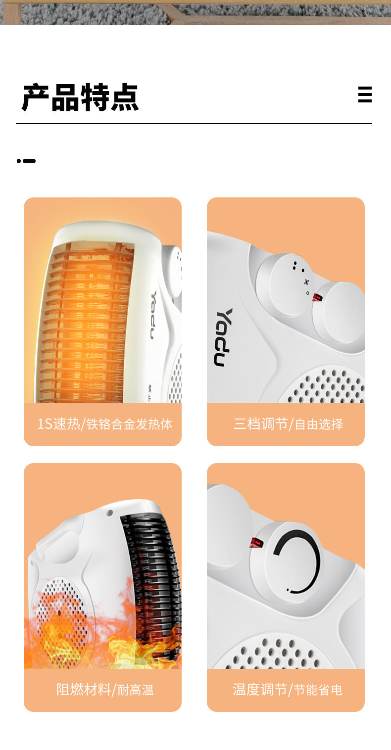 - Яду тепловой вентилятор (белый) двойной контроль температуры