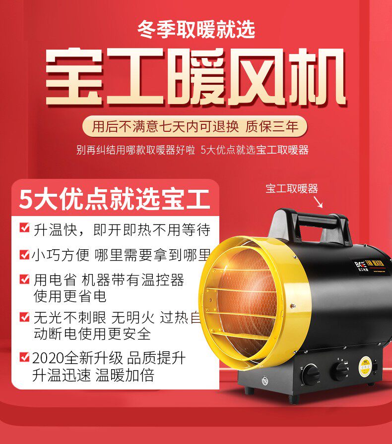 Bao Gong Industry High -Dower House House Drouhing Hot Air вентилятор большой коммерческий коммерческий электрический нагрев воздушный пушка