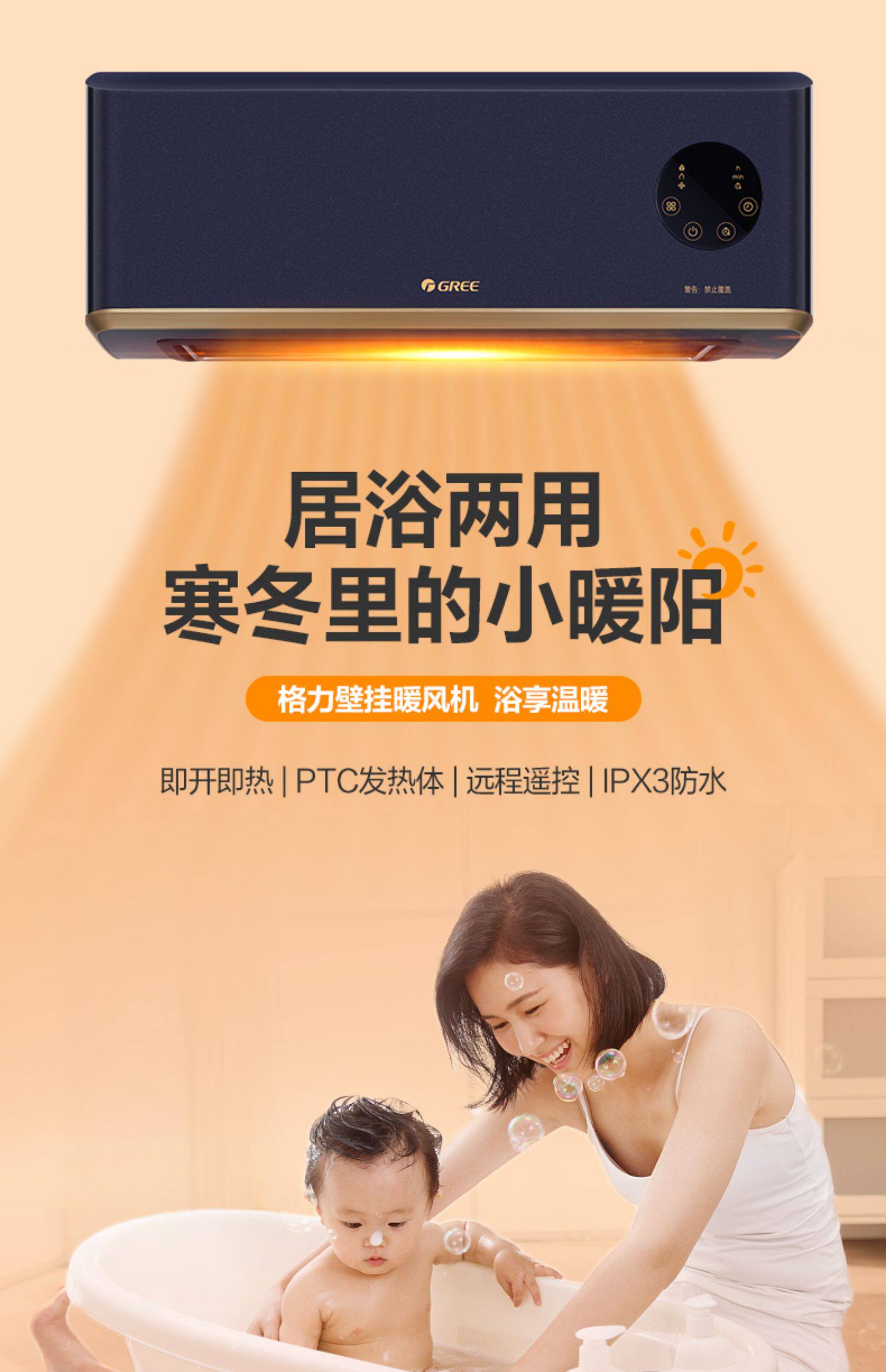Гри нагреватель ванной комнаты. Домохозяйственная стена -Связь с дистанционным управлением, ванная комната ванная, энергия, теплый и теплый двойной электрический нагреватель