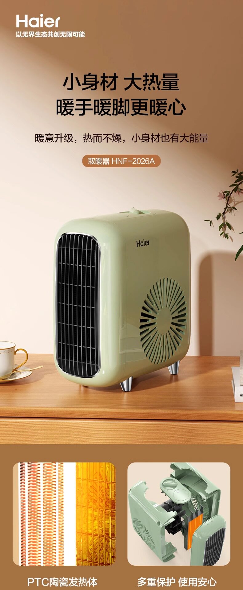 Haier Heater Домохозяйственное вентилятор Энергосберегающий электрический нагрев маленький солнцезащитный офис.
