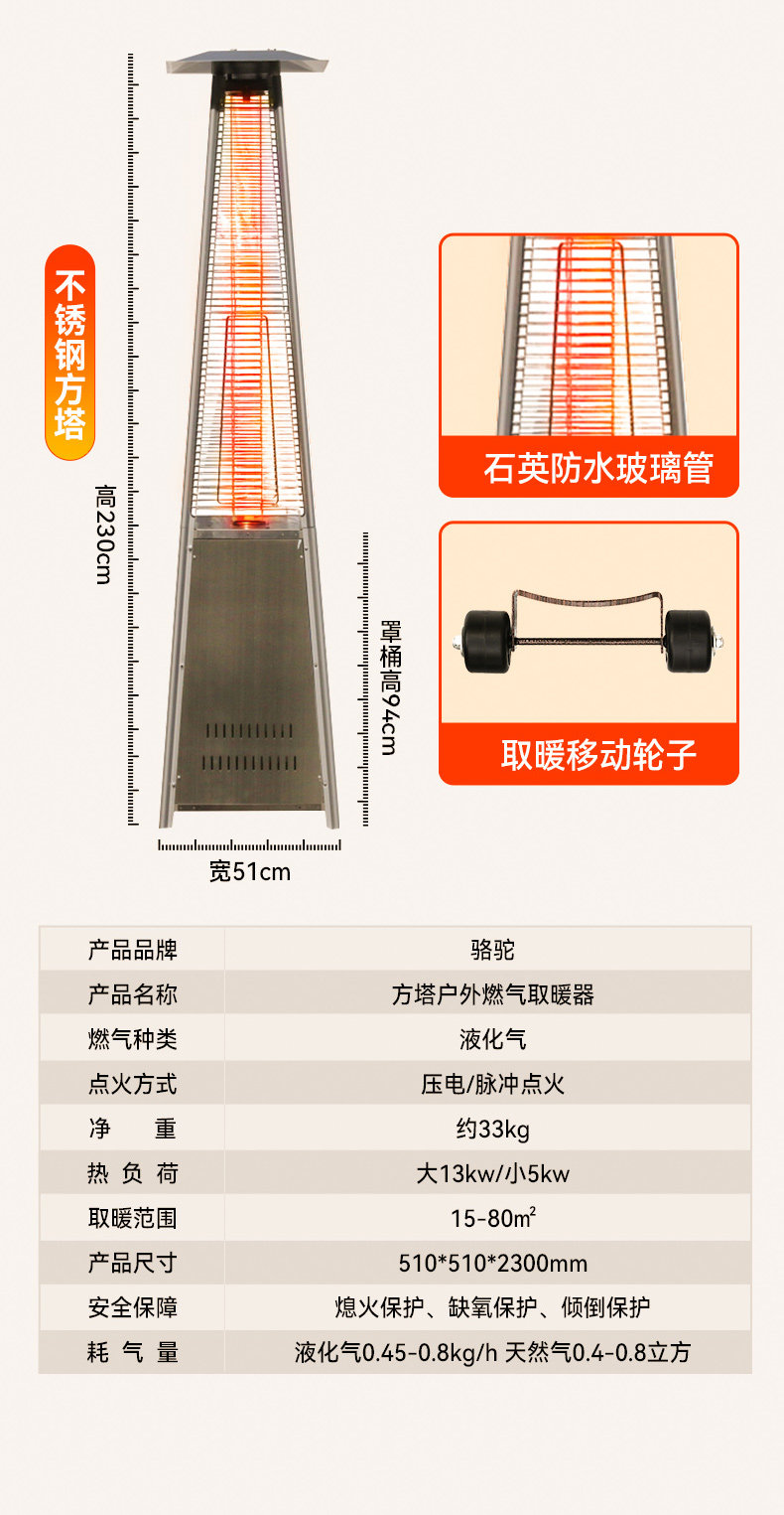Верблюд на открытом воздухе Коммерческий крытый газовый обогреватель Сжиженный природный газ Выбор нагрева