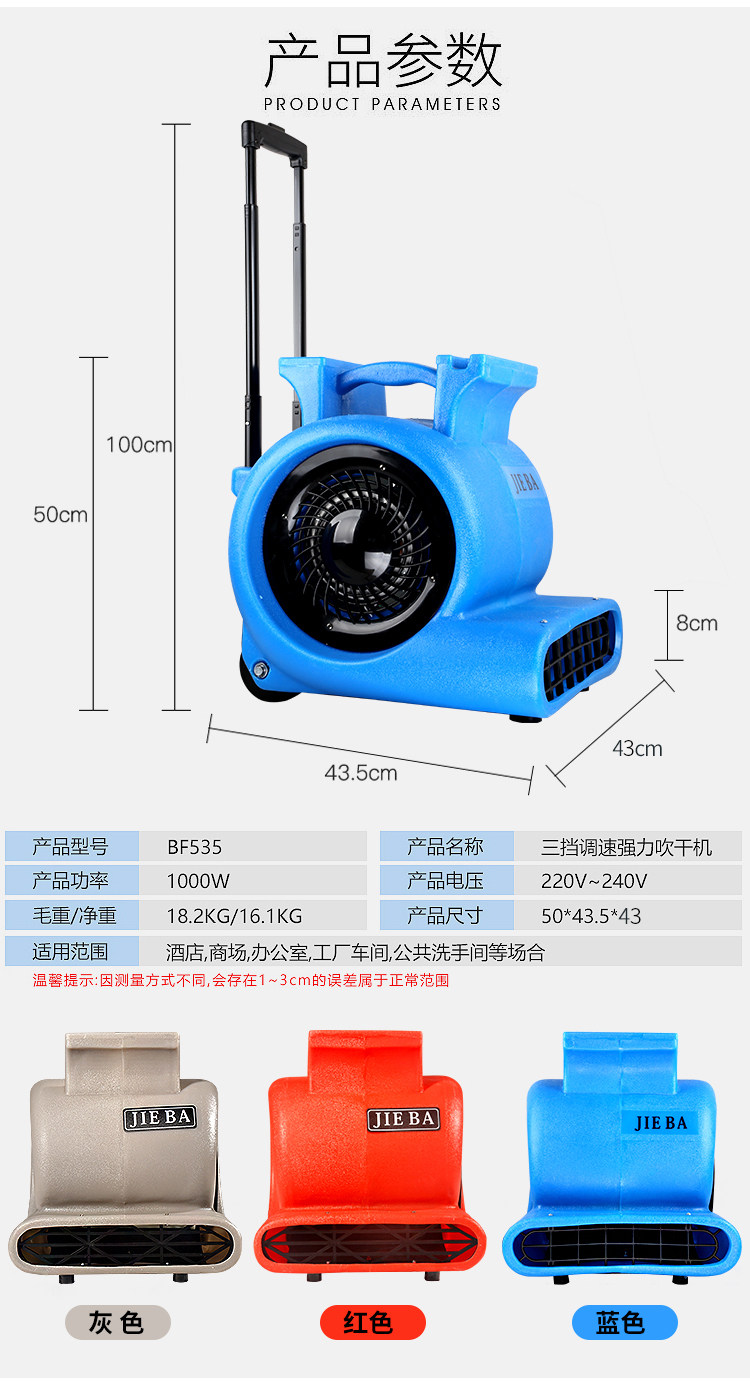 Jieba BF535 Трехнодерная выдувная машина, выдуваемая сушилка на пол, коврец для волос с феном промышленной гостиничный торговый центр Jieba BF535 вентилятор с высоким содержанием сухого сухого фронта. Высокая мощность
