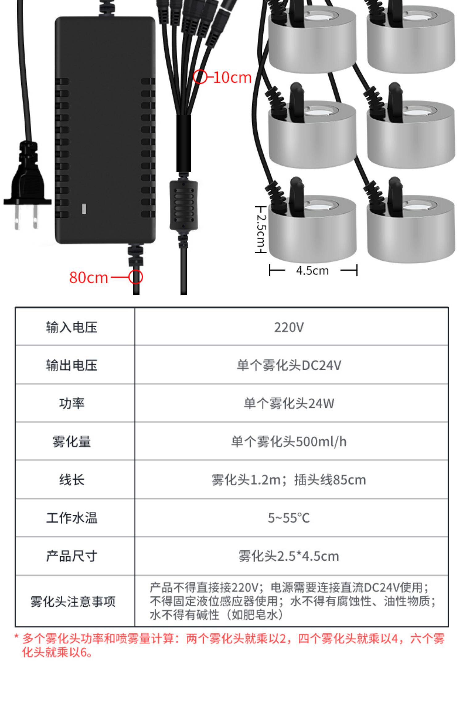 - Мощность 24V6A, перетаскивание 5 -корлорная влажная головка