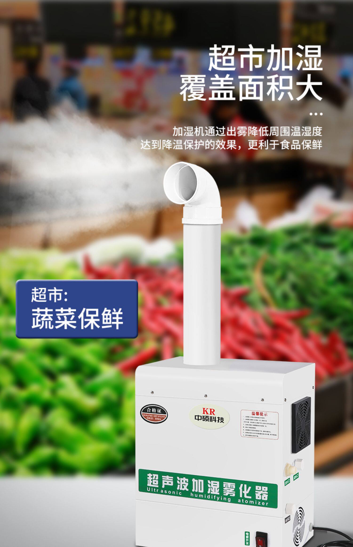 KR Промышленный увлажнитель Ультразвуковые апреры -овощи Свежие и увлажнительные, коммерческие крупные туманные мастерские воздушная висящая стена