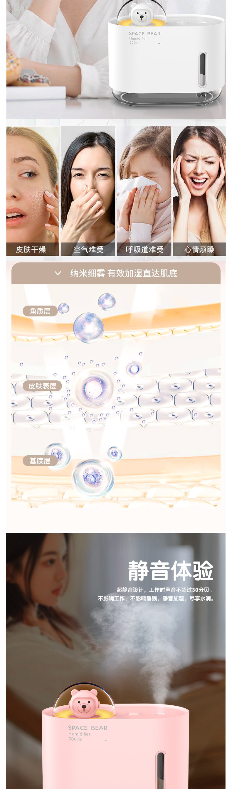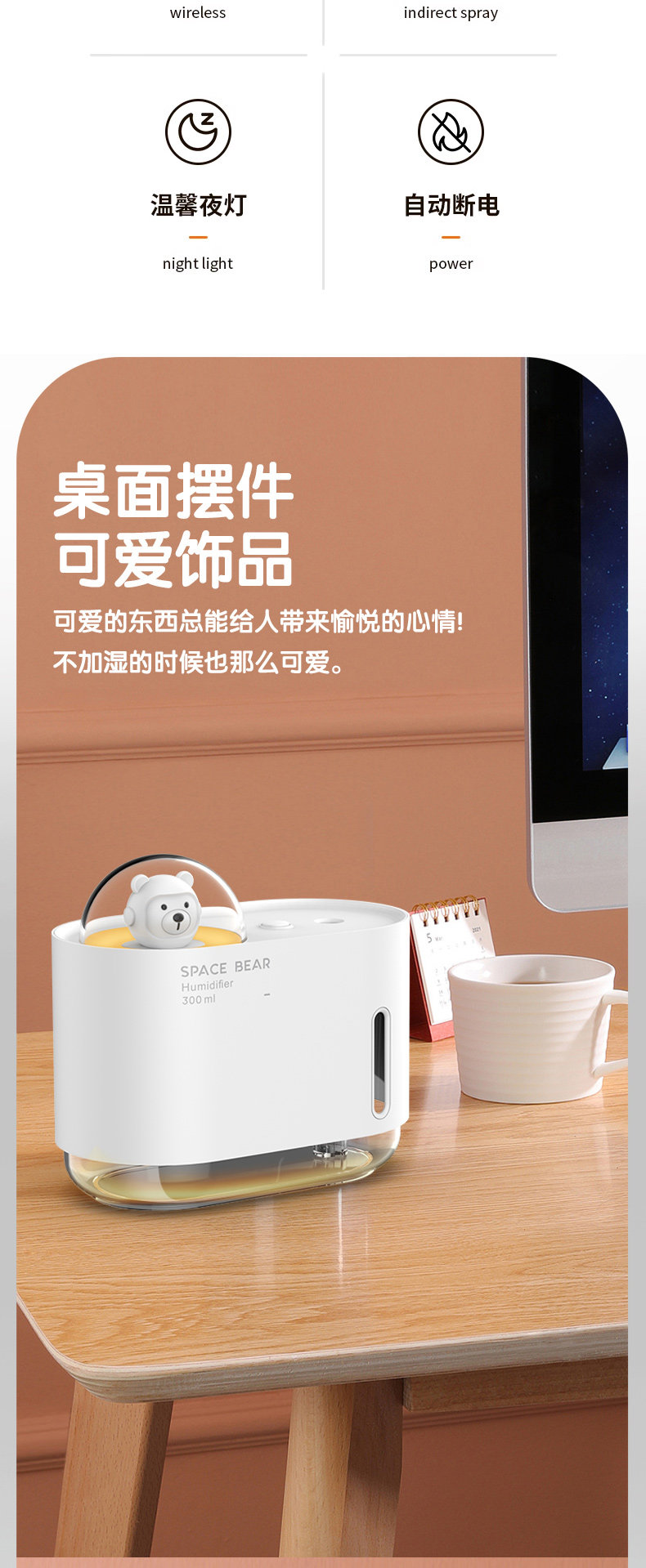 Беззвучный увлажнитель воздуха, настольный спрей, ночник, подарок на день рождения