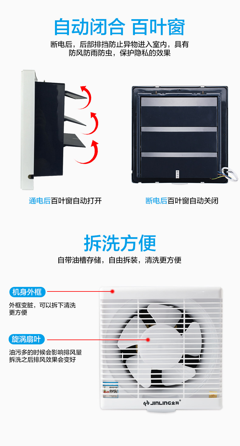 金羚 Мощный настенный квадратный вентилятор, 6 дюймовый