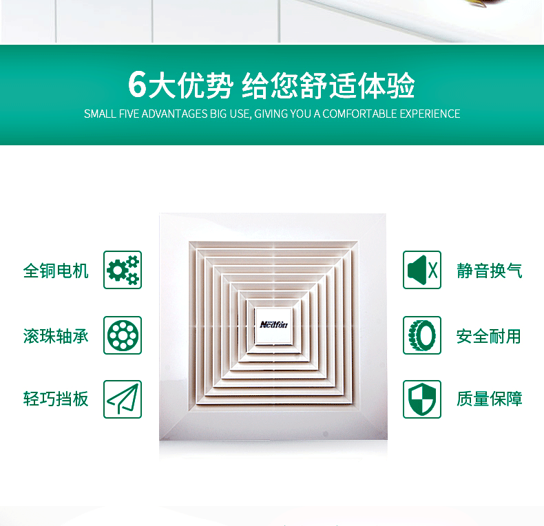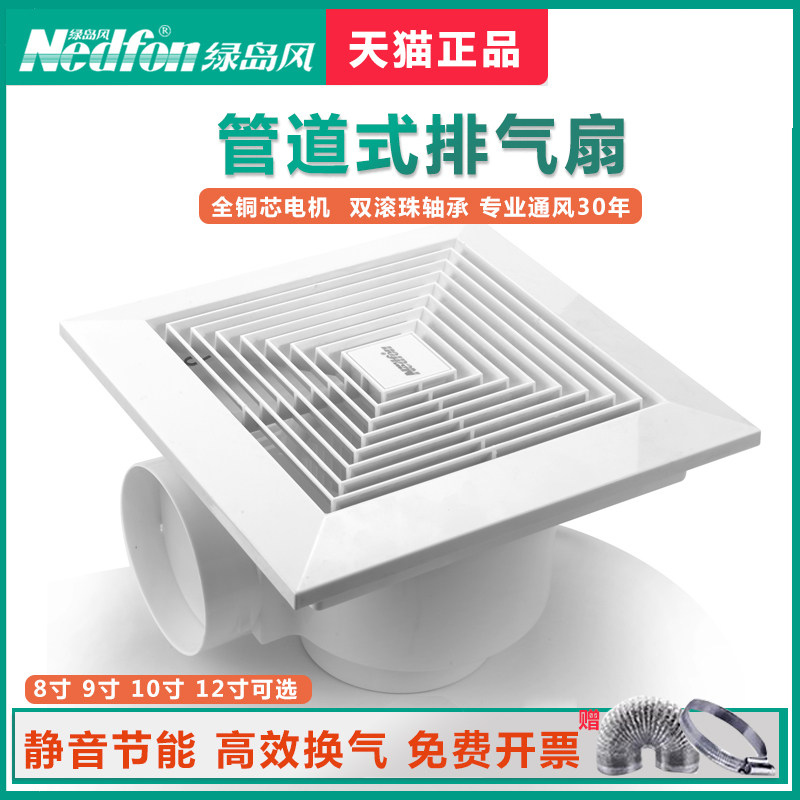 Зеленый остров Ветровой вентилятор Сильная тихая кухонная накачка 8/10 дюйма Ванная замена воздуха Потолок Ходовой легкий звук Светлый звук выхлоп
