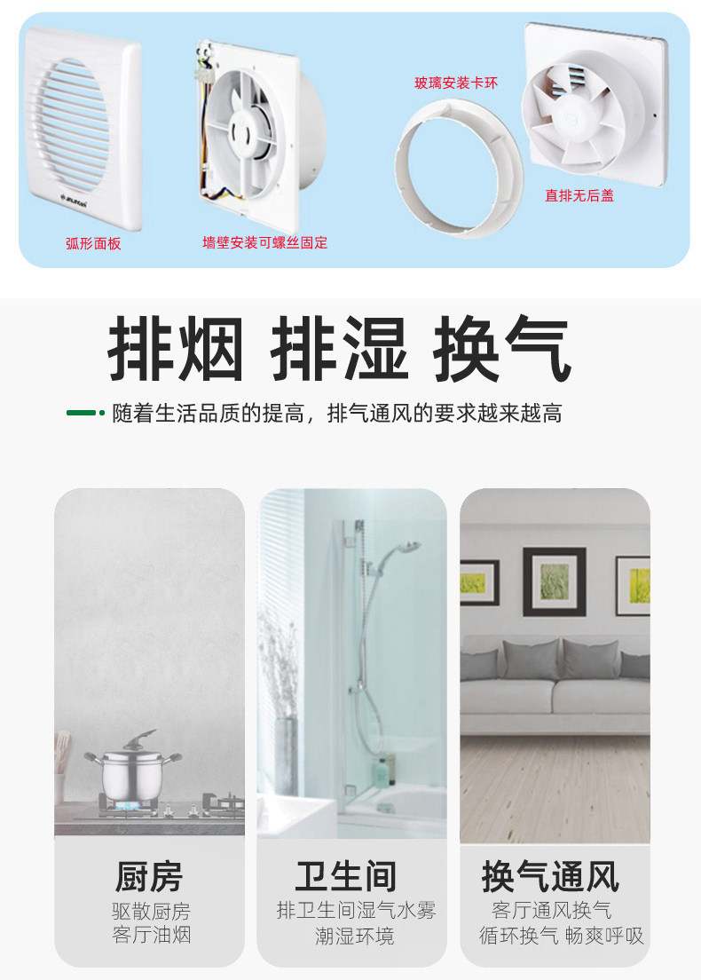金羚 Стеклянный круглый вентилятор, 6 дюймовый, 8 дюймов