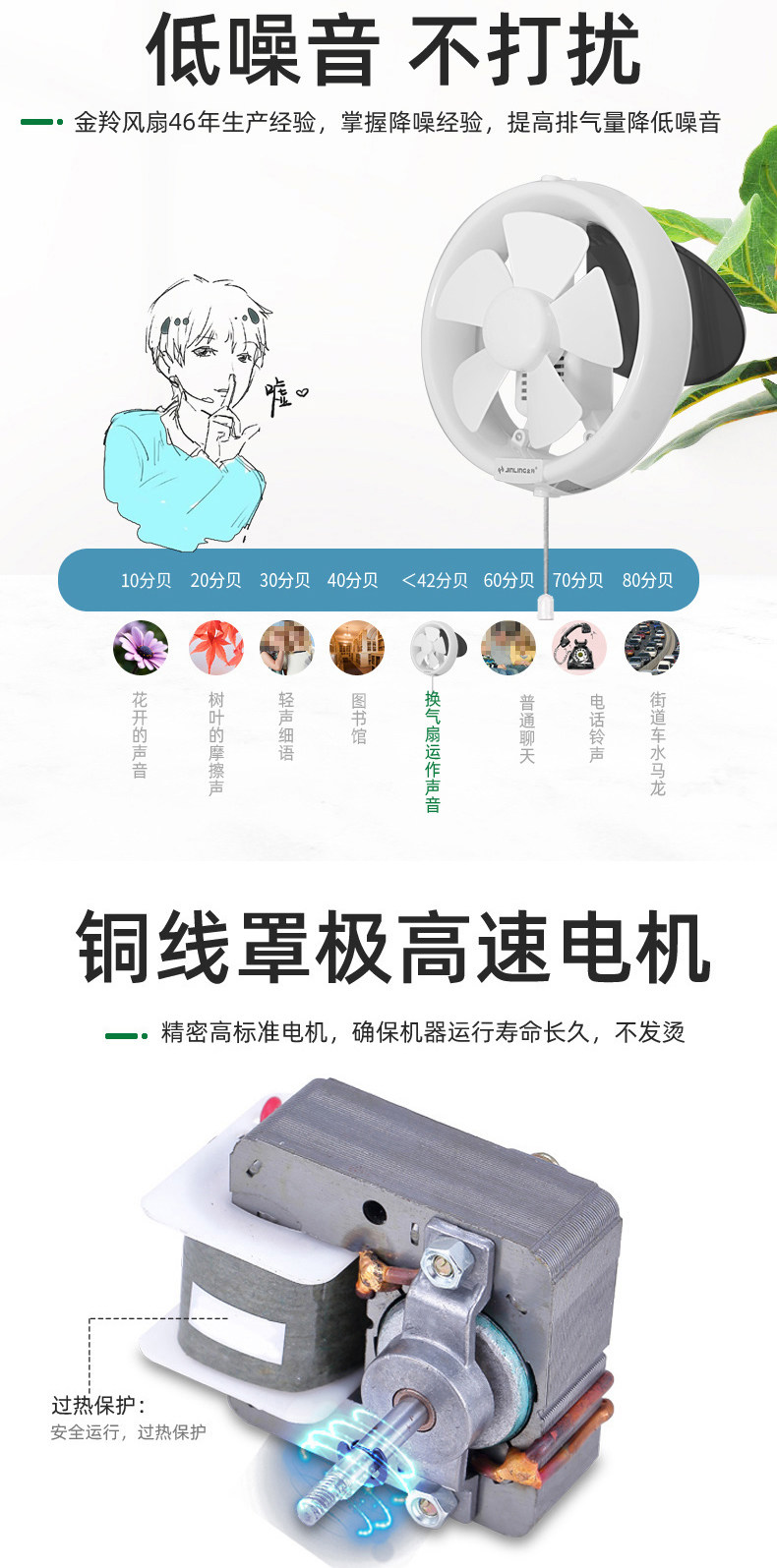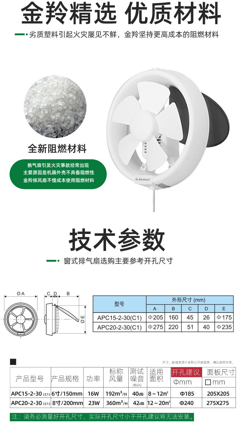 金羚 Стеклянный круглый вентилятор на шнурке, 8 дюймов