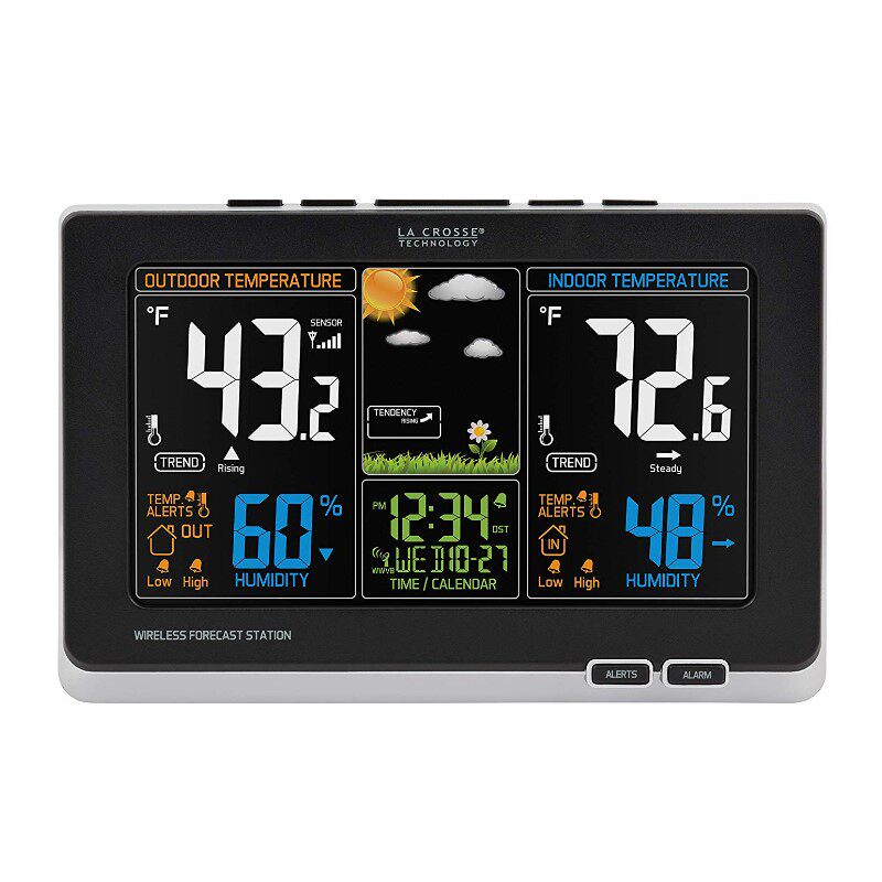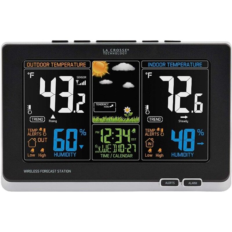 Используйте беспроводные технологии для достижения точной реальной погоды на заднем дворе.Анимированная погода покажет ваш личный прогноз погоды в соответствии с давлением воздуха.Наблюдение в помещении и наружных температурах и влажности и тенденциях.Установите личную тревогу по внутренней и удаленной температуре.Использование беспроводных датчиков может быть удаленно или в помещении (в подвале или пространстве ползания), чтобы увидеть риски плесени.Точное атомное время и дата и индикатор с низкой батареей.Включая адаптеры переменного тока для дисплея, запасные батареи (исключая) и беспроводные датчики нуждаются в батареи.