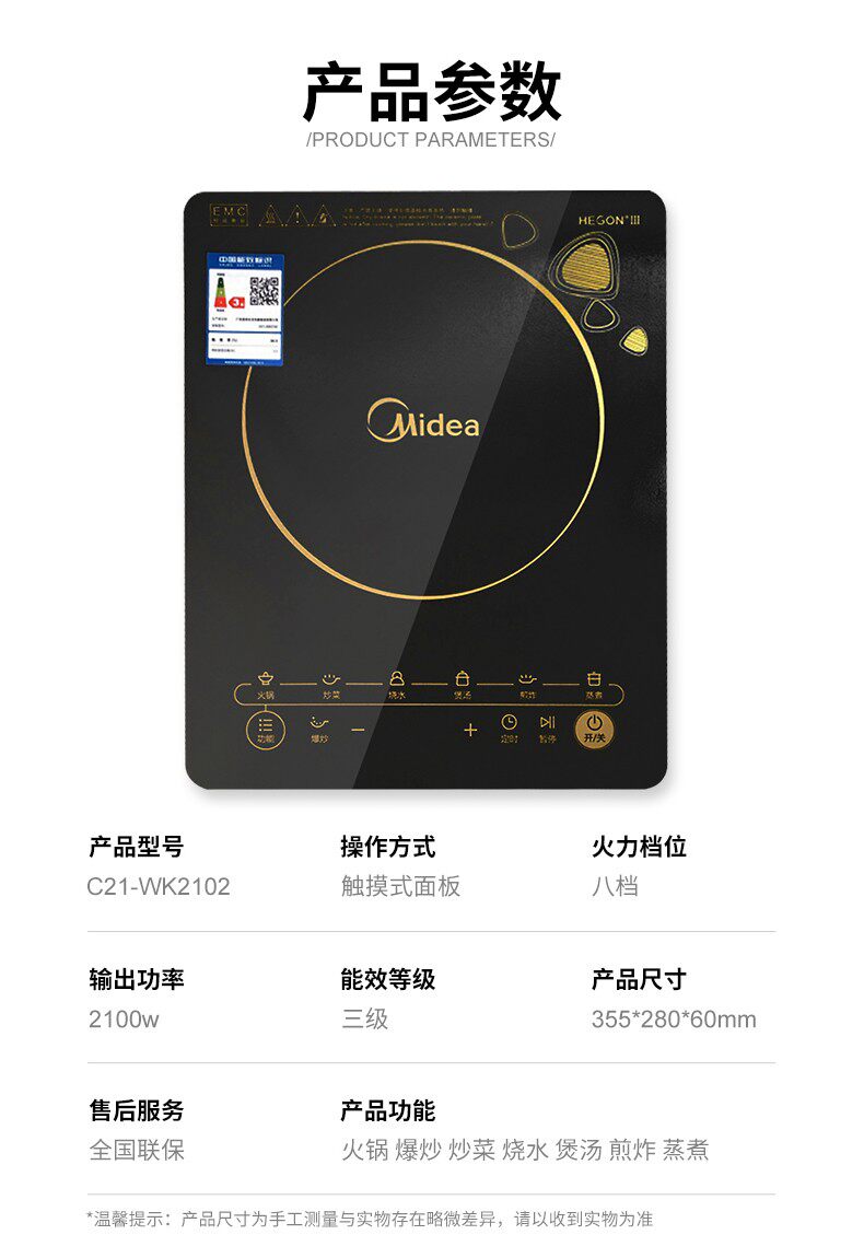 MIDEA C21-WK2102 Индукционная плита Домашняя многофункциональная жареная жареное горячий горшок с горячим горшкой для горшкой батареи жарь