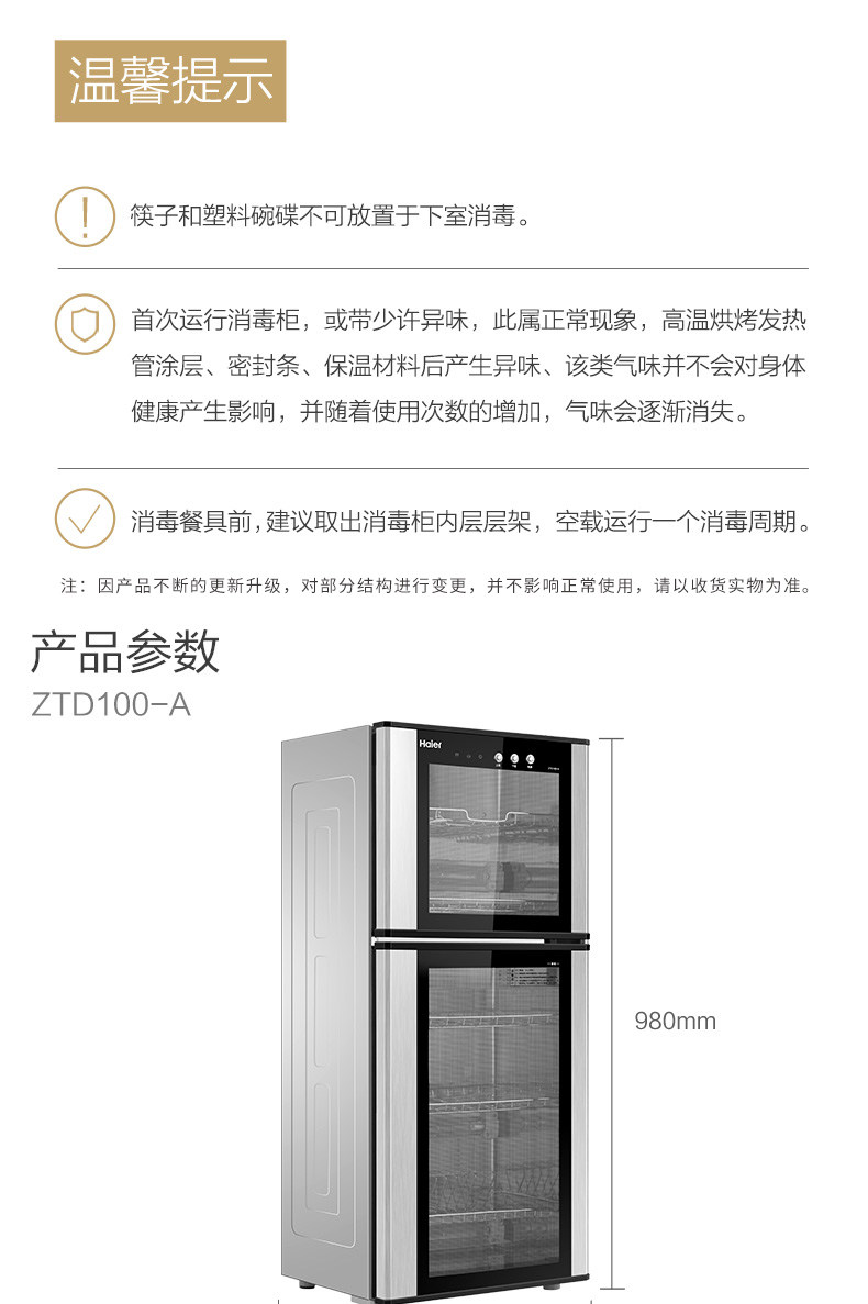 Haier Disinfection Cabint-Type Disinfection House 100-литровый стерилизованный шкаф мини-дезинфекционный шкаф ZTD100-A