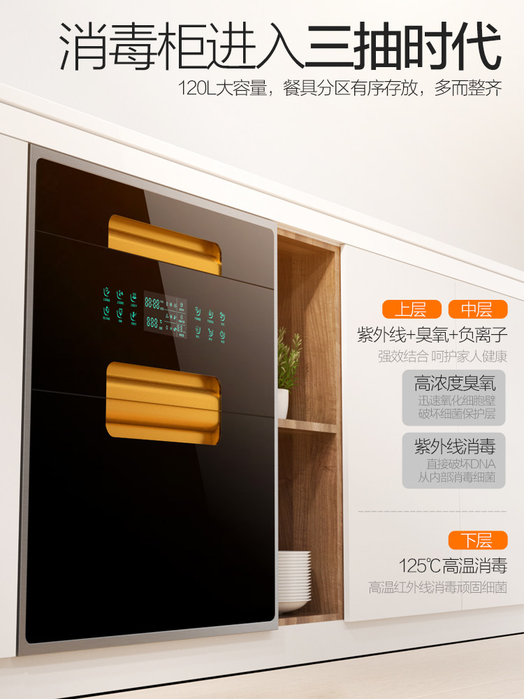 Добровокно-текстовая стерилизация шкафа Уточненная кухня 120 л трехэтажного высокотемпературного шкафа для дезинфекции небольшая кухня дома большая емкость