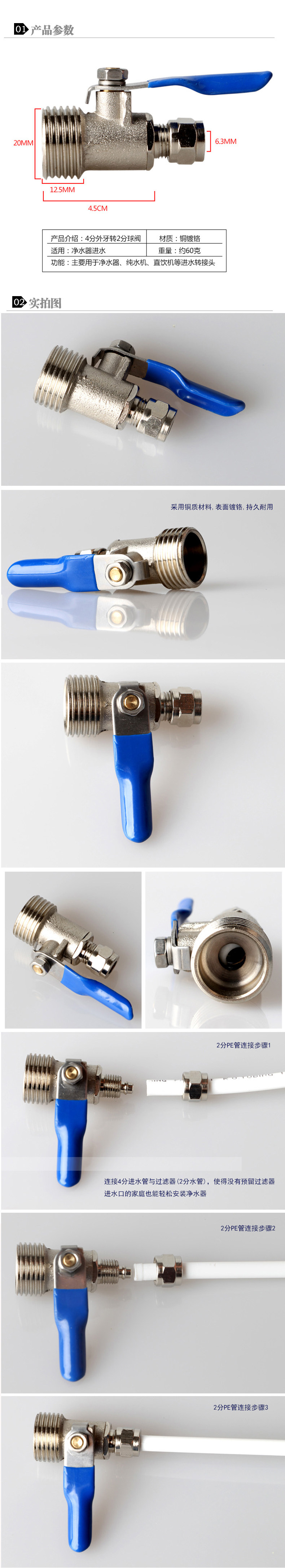 Очистчик воды 4 точки до 2 очков PE Tube Tube Dual -Tpass Contract Water Впускная вода входная входная вода Трехэтапный медный шаровой клапан