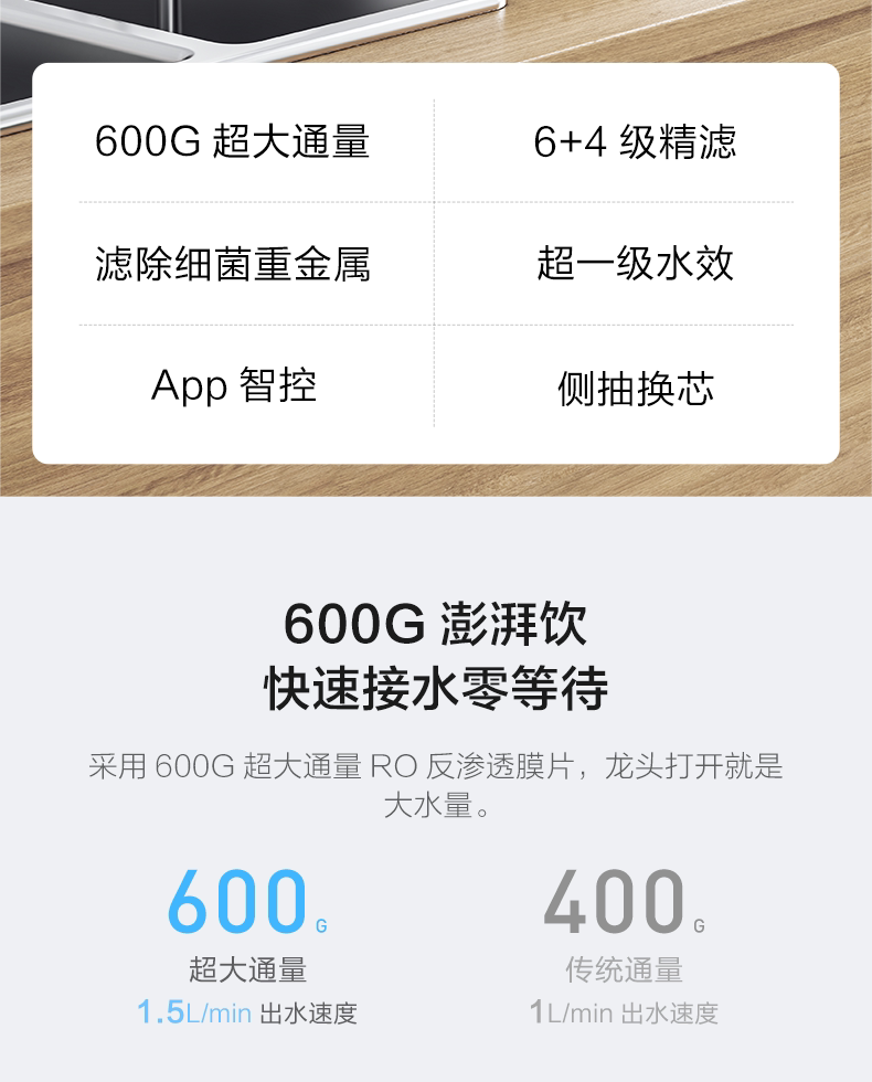 Очистка воды Yunmi Обратный осмос RO600G Кухонная пленка очиститель воды удвоил из воды.