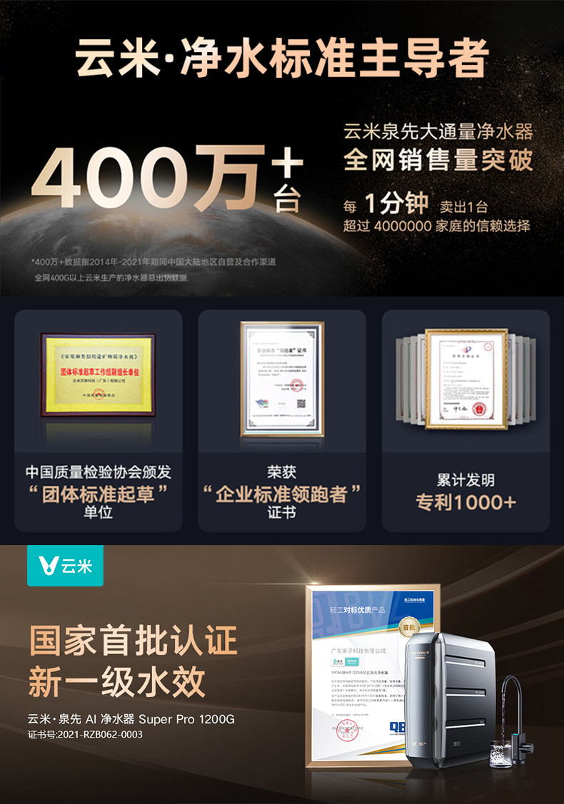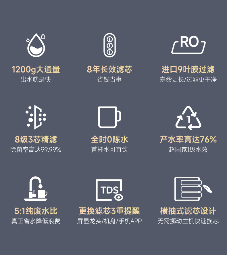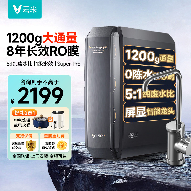 Очистка воды Yunmi 1200G Домохозяйство Прямое питьевая машина RO Обратный осмос Фильтр кухонная водопроводная вода для очистки водопровода
