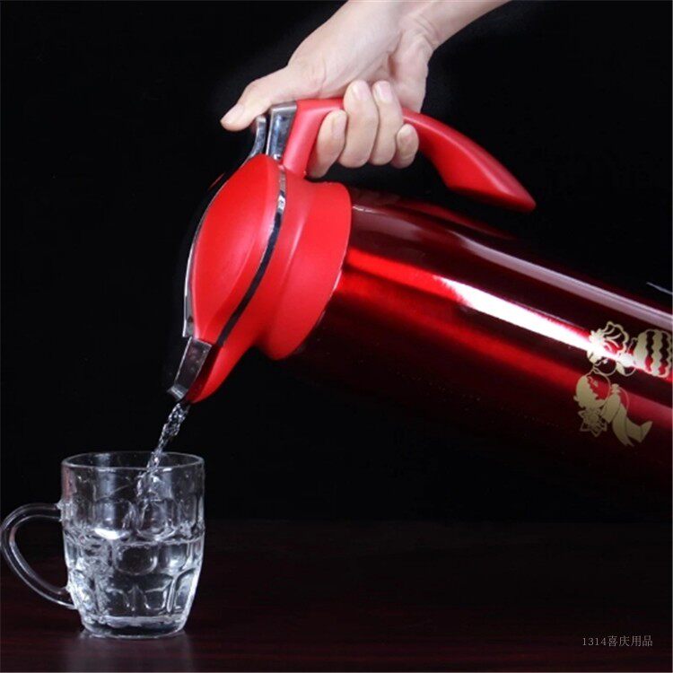 Чайник, вместительный и большой красный термос из нержавеющей стали