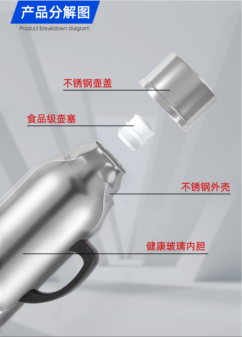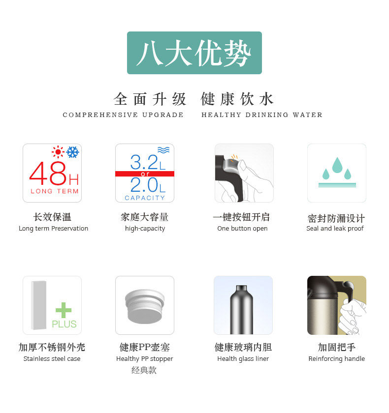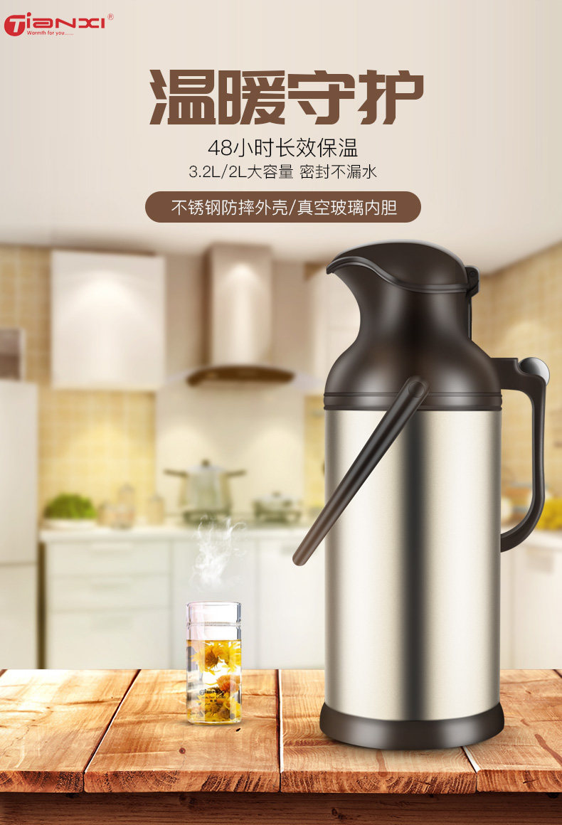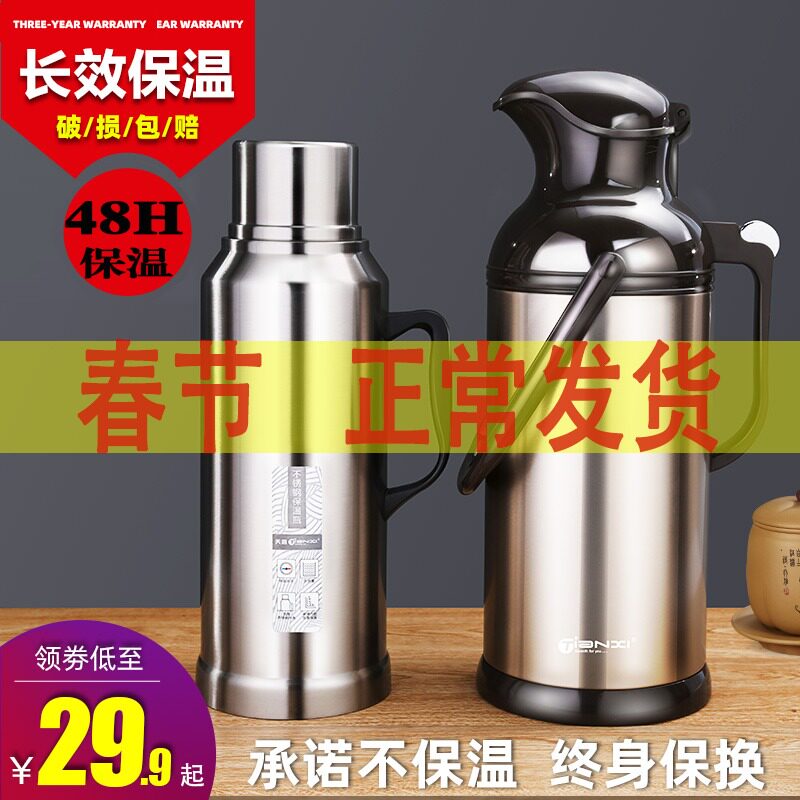 Стеклянный вместительный и большой вкладыш для домашнего использования, старомодный термос из нержавеющей стали для школьников