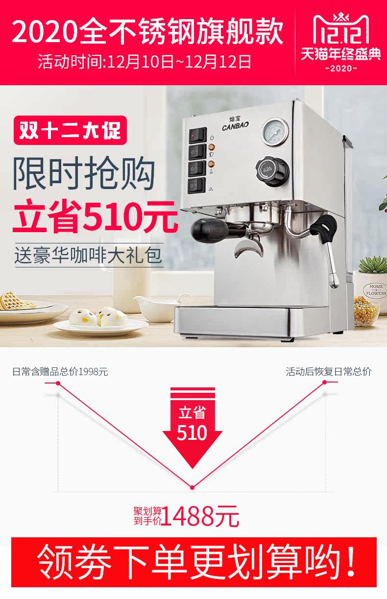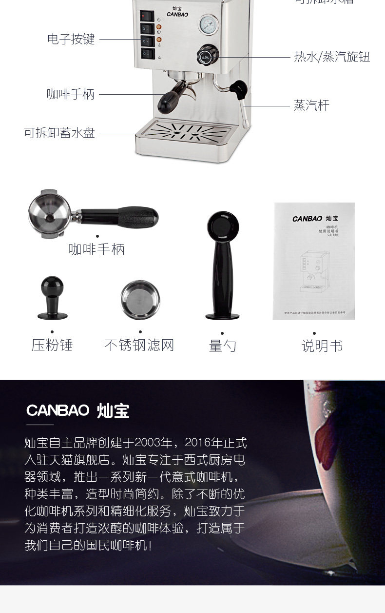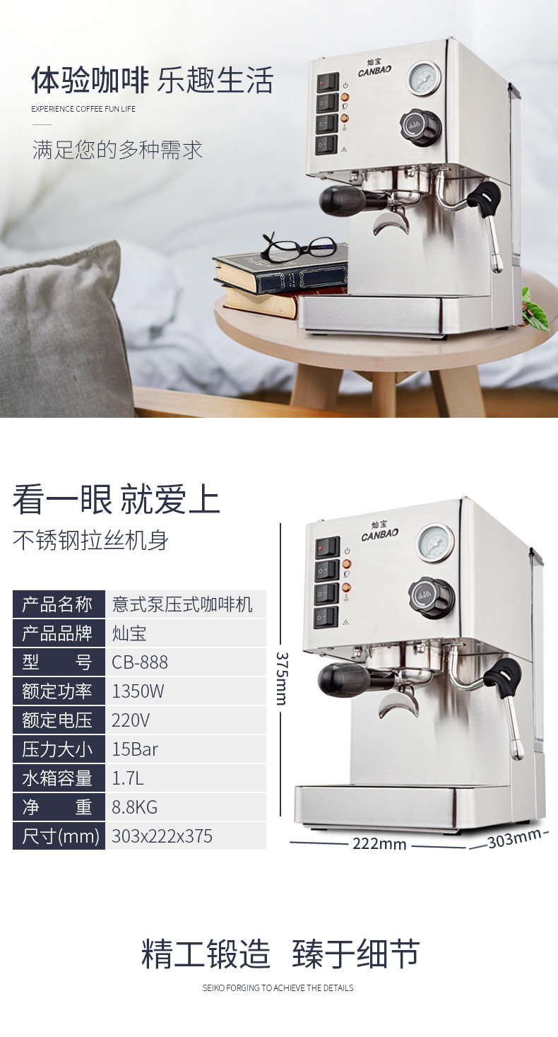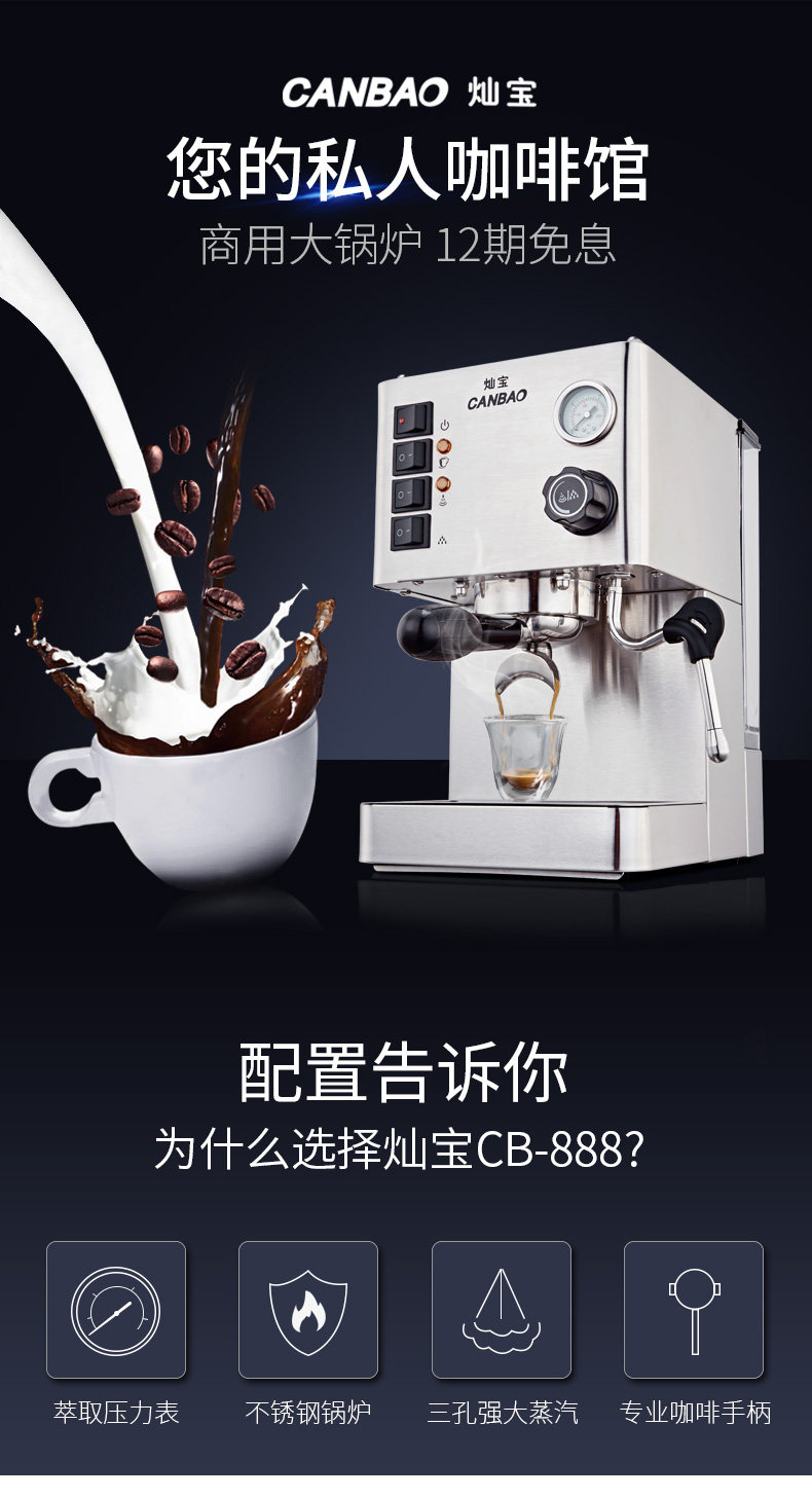 灿宝 CB-888 кофемашина теперь размалывает полусферо-динамические и эксцентричные небольшие паровые профессиональные котлы