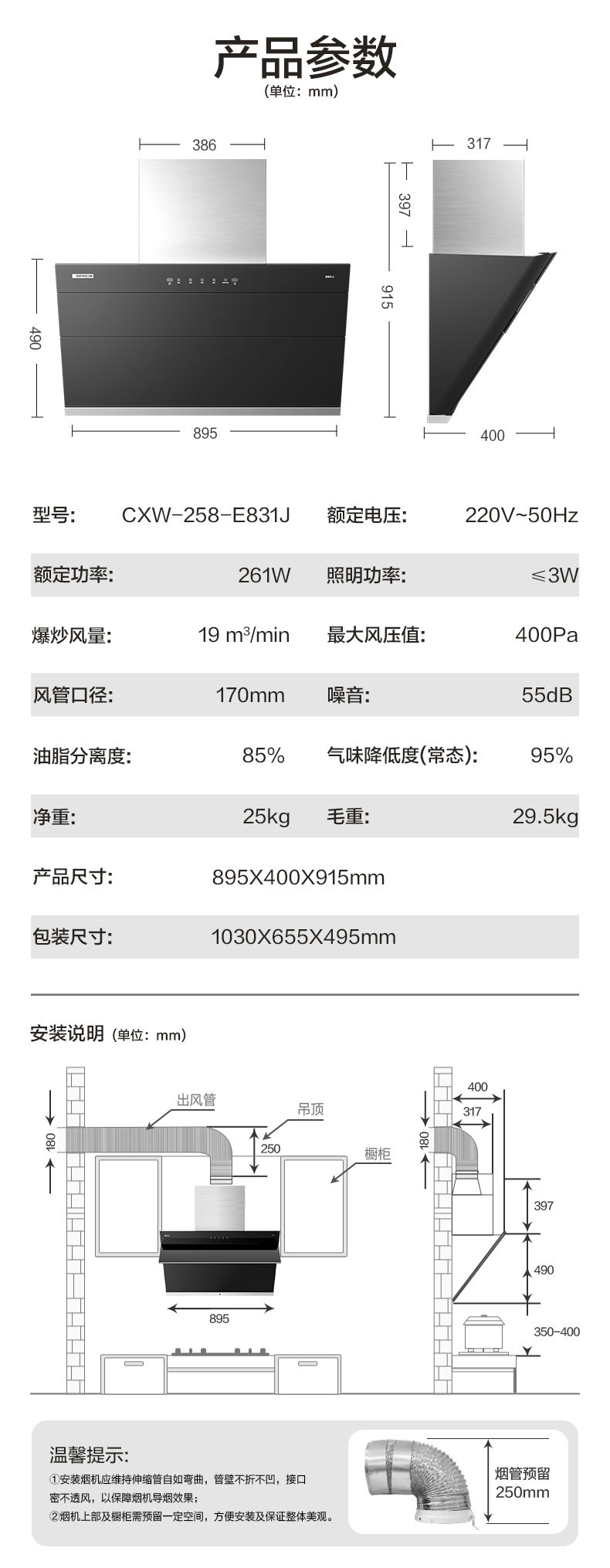 欧派 E831J Smart Sensing Hoods Susterrius Platty Polycler