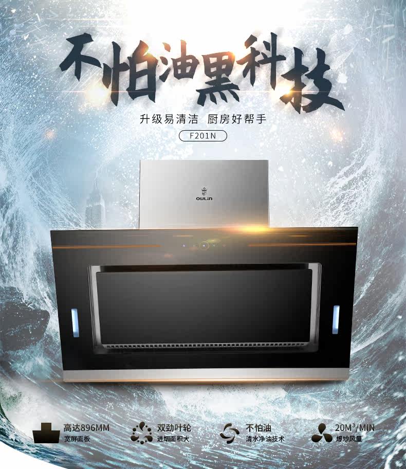 Насос насос сжигание капюшона домохозяйственная кухонная всасывающая сила не боится нефть легкой очистки технологии небольшая боковая всасывание F201N