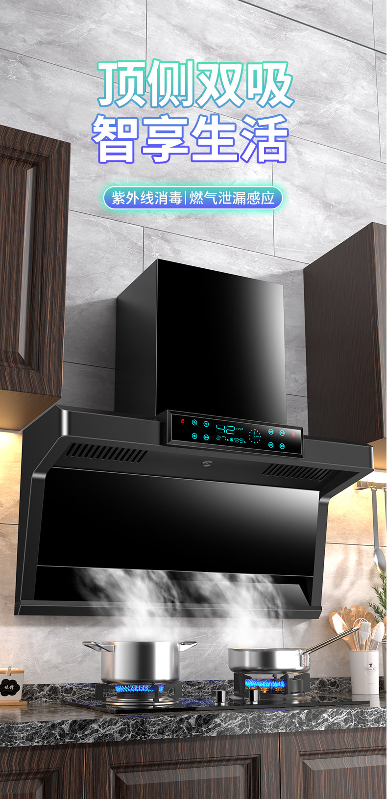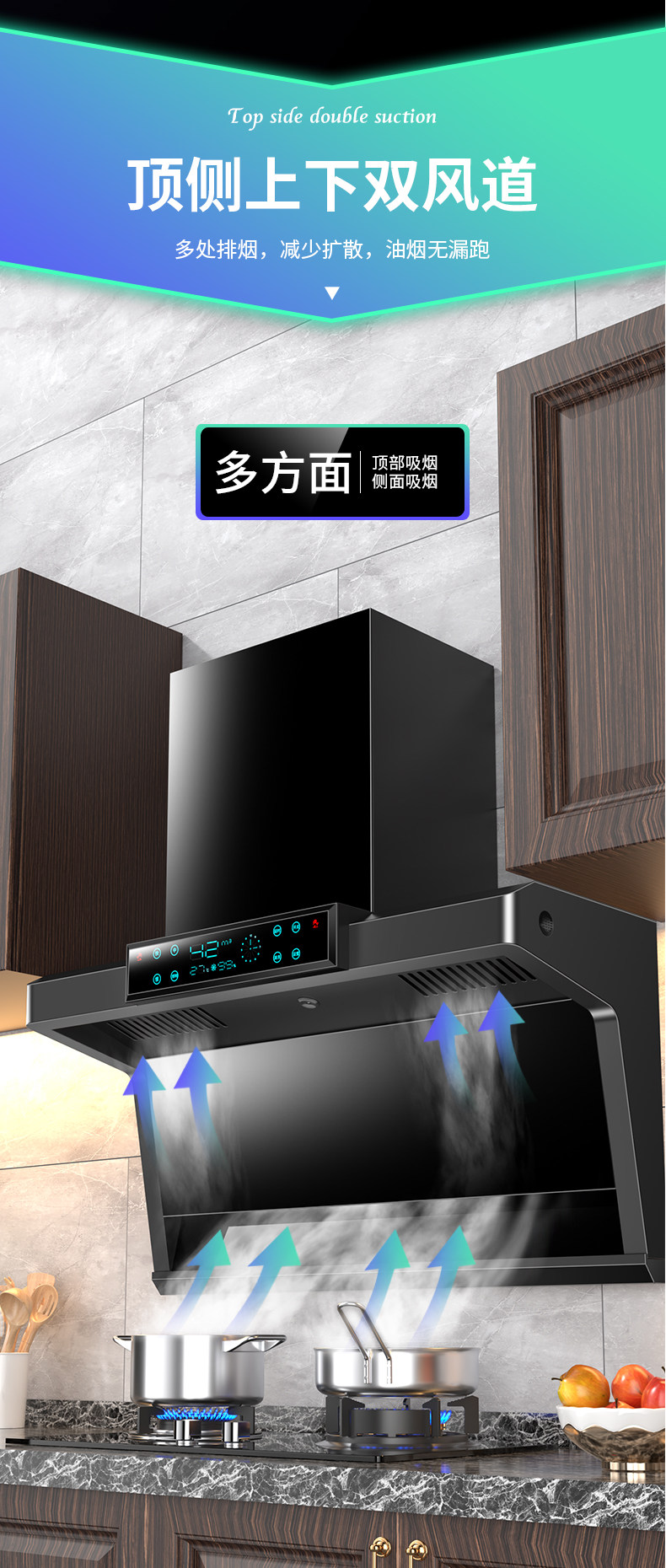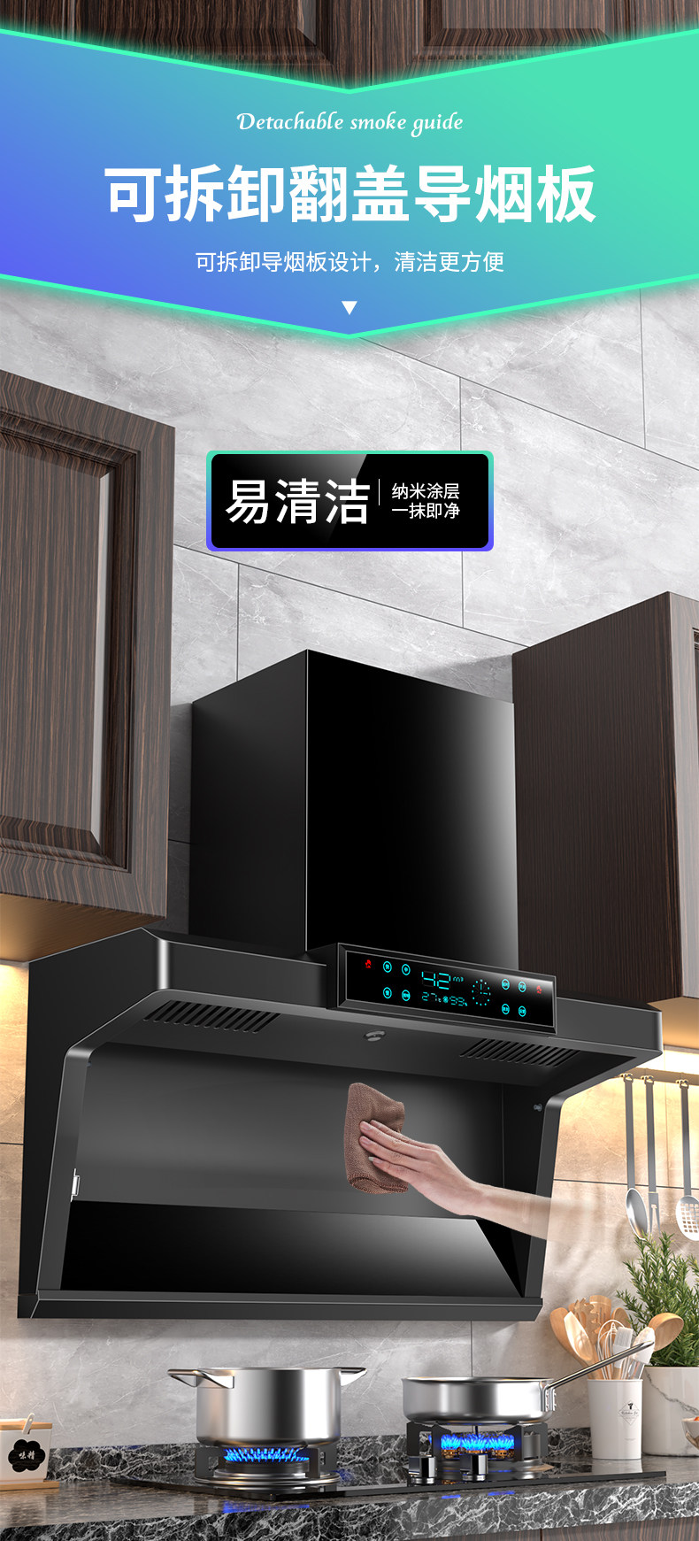 Японская вишневая цветущая насосная капюшона Семейная кухня Полностью автоматически очистит верхнюю двустороннюю пакет дымовых газов