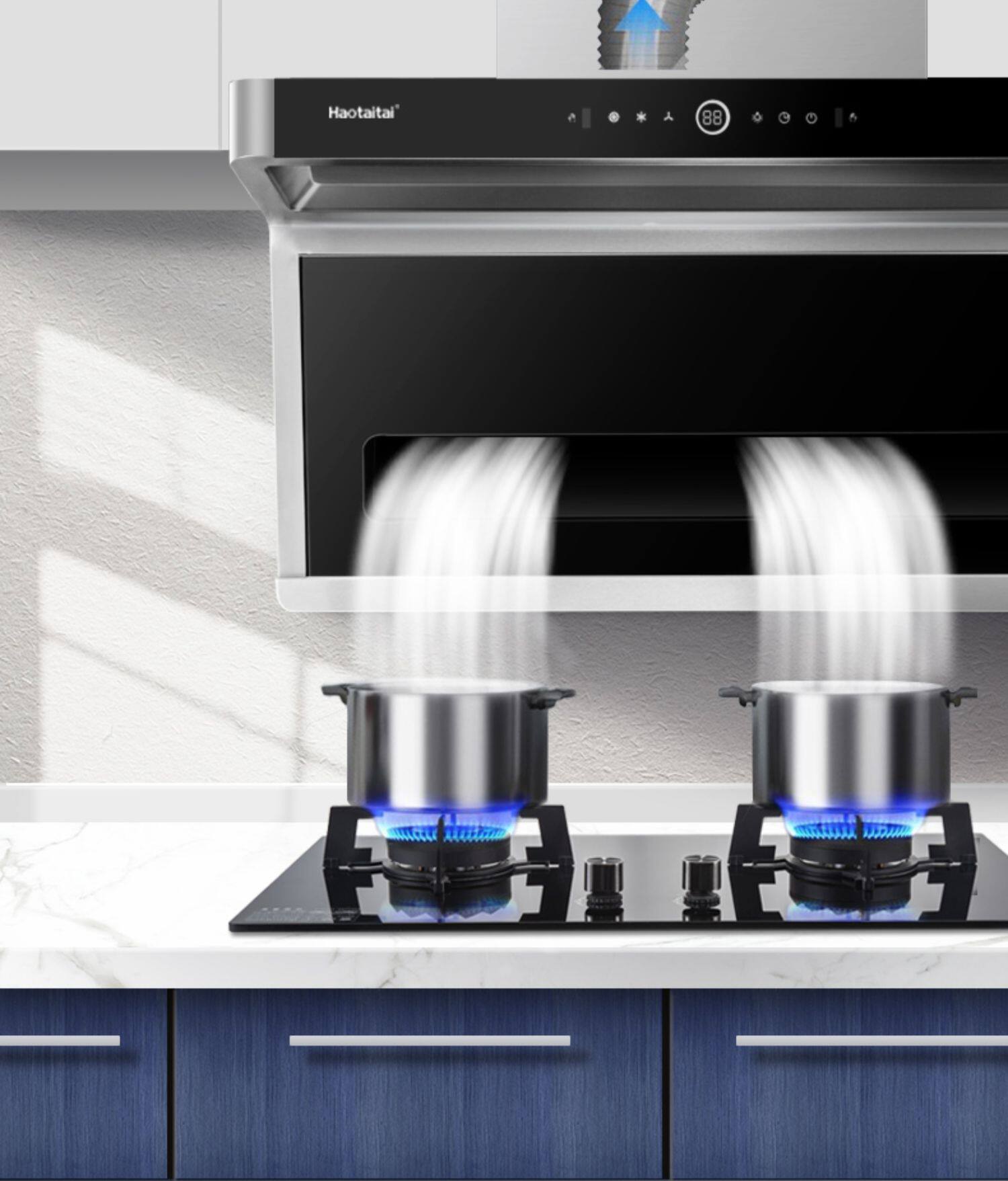 Хорошая жена 7 -в форме из нержавеющей стали капюшона капюшона домашняя кухня большая всасывание верхняя часть двойного всасывания капюшона