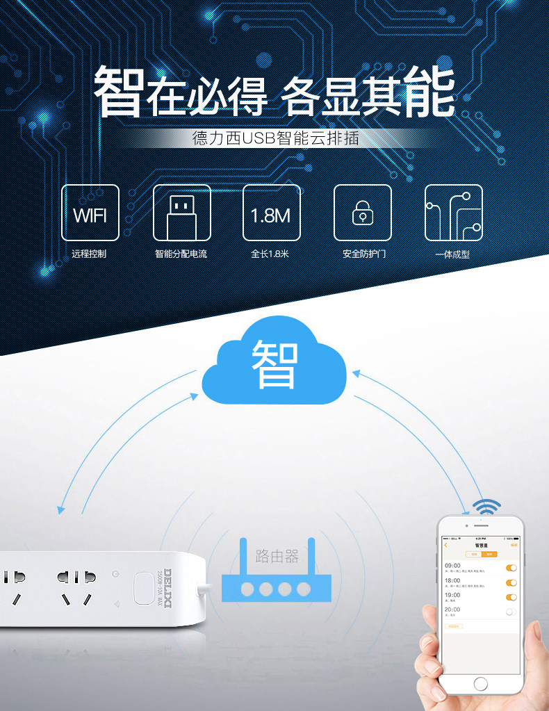 德力西 Вставьте Wi -Fi Intelligent Timing Switch 3 USB быстро зарядка
