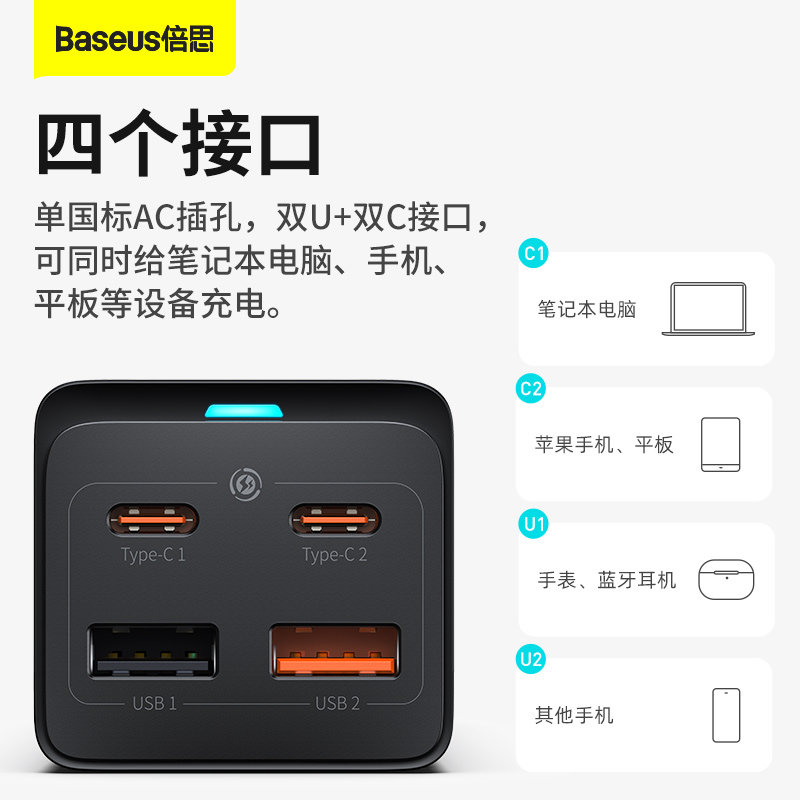 Зарядное устройство, совместимый мобильный телефон, ноутбук с зарядкой, быстрая зарядка 65W