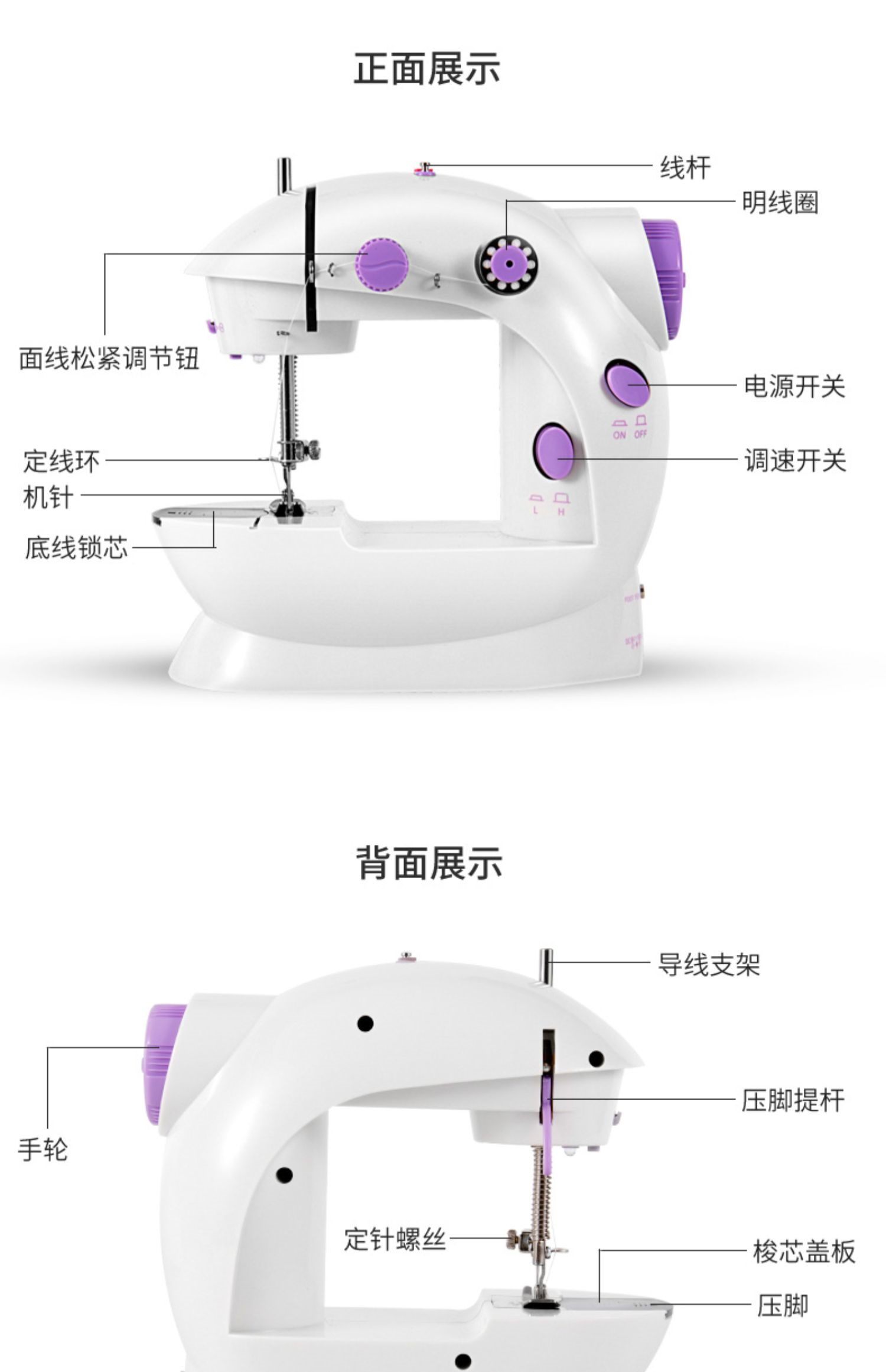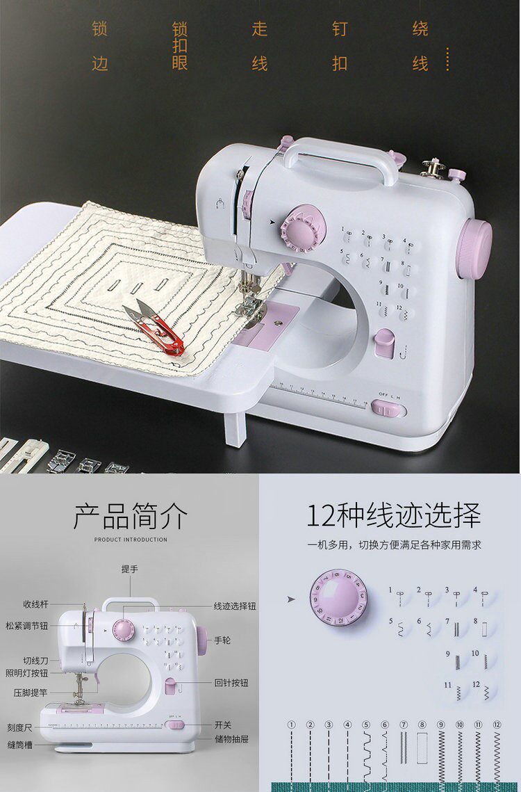 - Швейная машина+Платформа расширения+ножницы+24 цветовой проволоки с освещением с режущим ножом