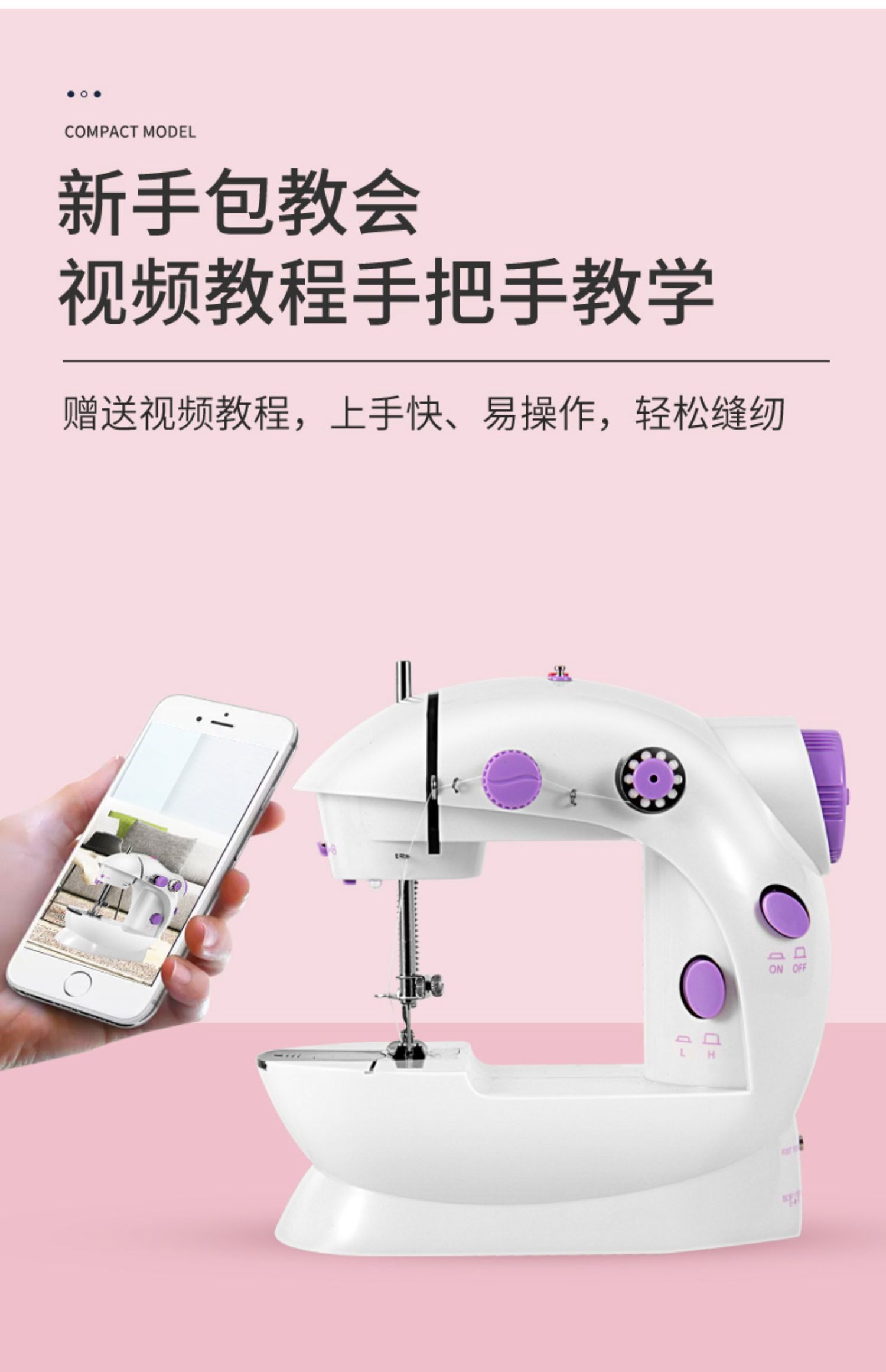 Полностью электрическая швейная машина 202, бытовая электрическая мини-многофункциональная маленькая ручная швейная машина с микропедалью