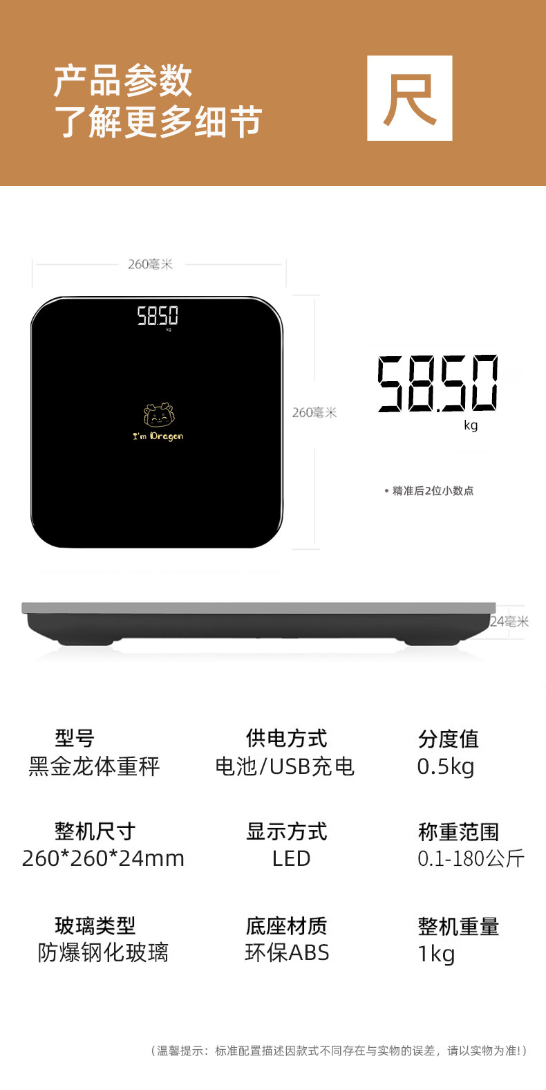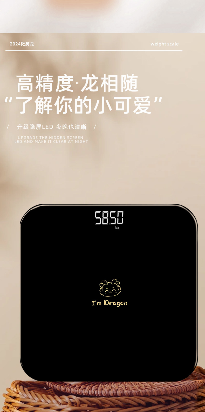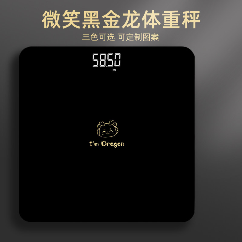 Black Golden Dragon Pattern Электронный призыв к домашним точным маленьким мультфильмам светодиодного светодиода Smart Scale Scale Зарядка девочек, чтобы похудеть