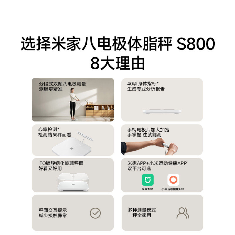[Новый продукт] Официальный баннер Xiaomi Mijia Восьмиэлектродные весы для измерения жира S800 Домашние электронные весы для снижения жира Весы для измерения веса тела