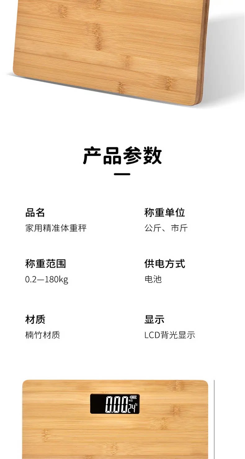 Высокоточные электронные весы с бамбуковой панелью, 180 кг, для взрослых, большие портативные бамбуковые весы, которые не сломаются при падении.