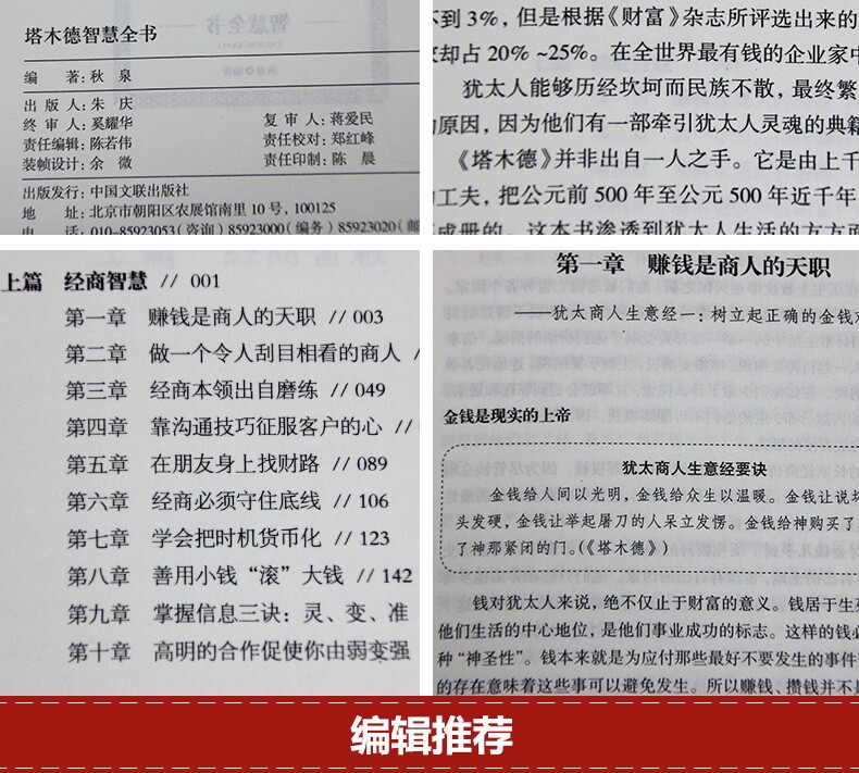 Версия в твердом переплете подлинной бесплатной судоходной коллекции Талмад Китайская версия еврейской бизнес -мудрости и успешной вдохновляющей жизни философской книги Мудрость Классическая образовательная коллекция колледжей в твердом переплете эссенции
