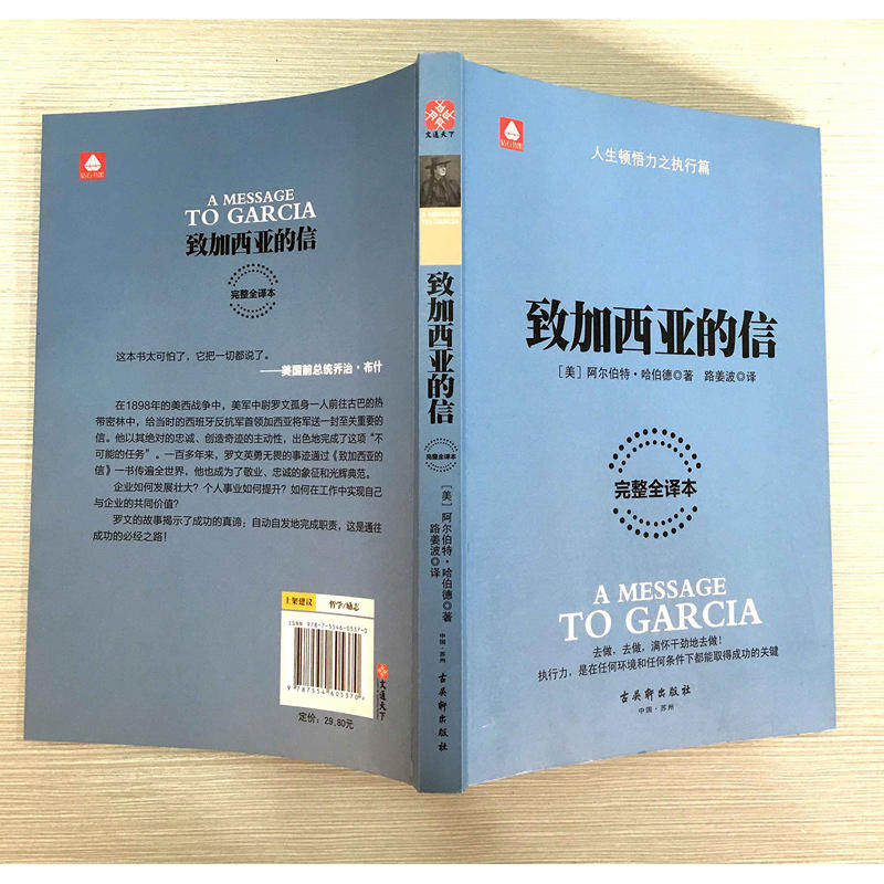 "Письмо Гарсии"Классическая вдохновляющая работа, эта книга составляет всего десятки тысяч слов, но она создала мифы о продажах по всему миру.Эта книга в основном рассказывает историю о президенте США МакКинли, просив лейтенанта Роуэн, чтобы передать письмо генералу Гарсии во время испанской американской войны.