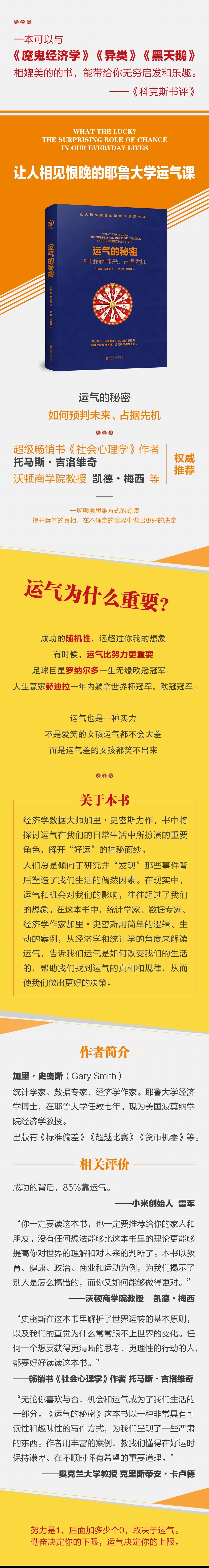 Люди всегда склонны учиться и“Обнаружить”Случайные факторы, стоящие за событиями, которые формируют нашу жизнь. На самом деле удача и возможности часто влияют на нас больше, чем мы можем себе представить. В этой книге статистик, эксперт по данным и писатель-экономист Гэри•Смит использует простую логику и яркие примеры, чтобы интерпретировать удачу с точки зрения экономики и статистики, рассказывая нам, как удача меняет нашу жизнь, помогая нам найти истину и законы удачи, чтобы мы могли принимать более правильные решения.