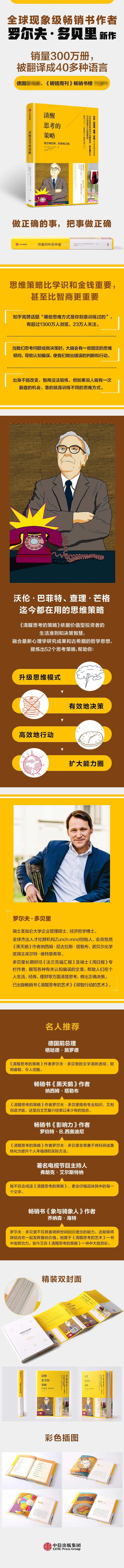 Автор книги «Стратегии ясного мышления» Добери, основываясь на стратегиях мышления успешных стоимостных инвесторов, а также психологических исследованиях за последние 40 лет и древнегреческих философских мыслях, обобщил 52 стратегии мышления, которые помогут нам постепенно корректировать и оптимизировать наш мозг, изменить наше познание и улучшить способности к принятию решений и действиям.