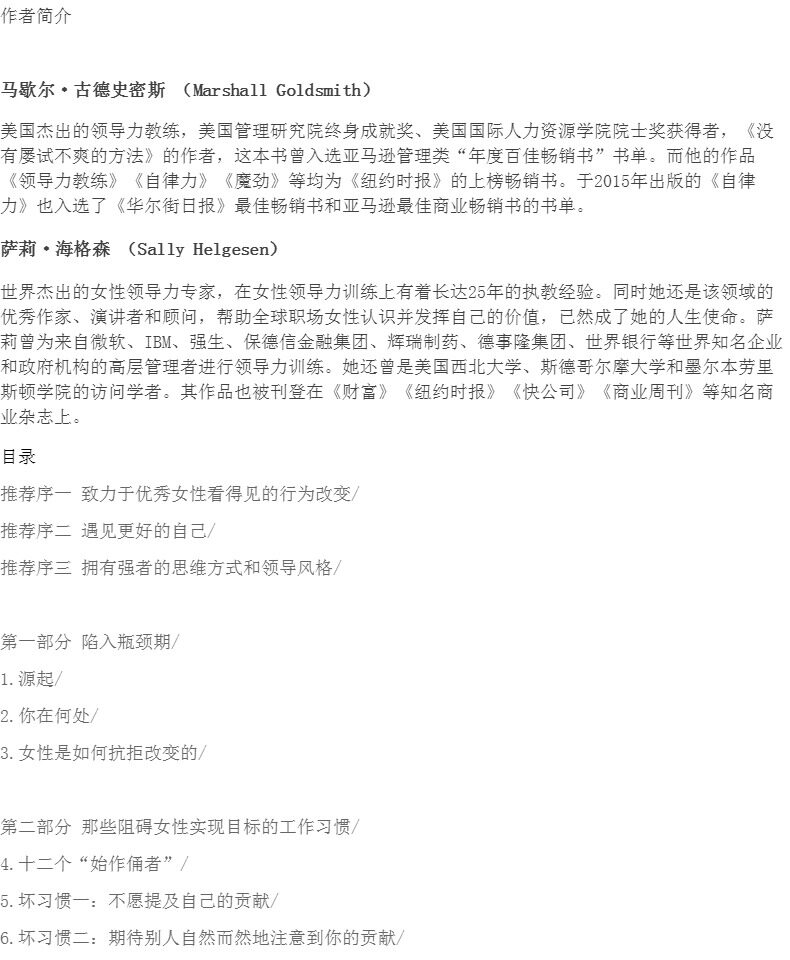 В качестве женской карьеры: Fan Deng's Reading Club рекомендую Маршаллу Гурус Смит, вдохновляющие успешные книги по психологии, женские великолепные преобразования