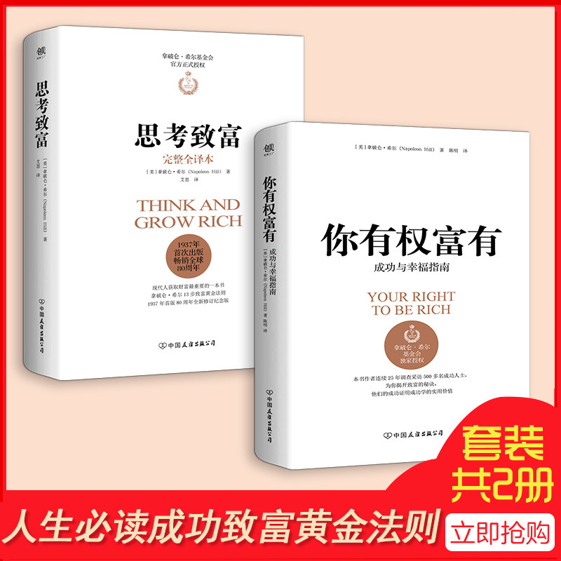 Подумав о том, чтобы стать богатым, вы имеете право на что -то разбогатеть, установите 2 тома в твердом переплете, подлинные книги, успешные мастера Наполеона Хилла, чтобы получить богатые золотые правила вдохновляющей книги бестселлера бестселлера