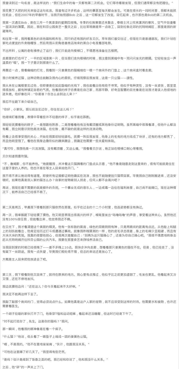 В тот день, когда я встречаю кошку с Бобом А. Уличной Кошкой по имени Боб, бездомный кот по имени Боб Кэт Китайский версия «Бродяга Боб Боб», когда Боб приходит в дверь, бродячий роман фильма «Кот Боб».