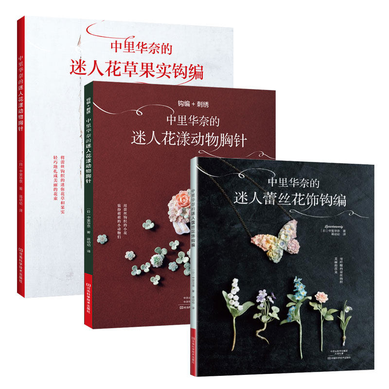 Все 3 тома подлинных книг, очаровательное редактирование цветочного крючка Рины, Китай, очаровательное редактирование кружевного крюка Чжунли Васано+Очаровательная цветочная животная брошь (крючок редактирование+вышивка) Zhongli Hua na