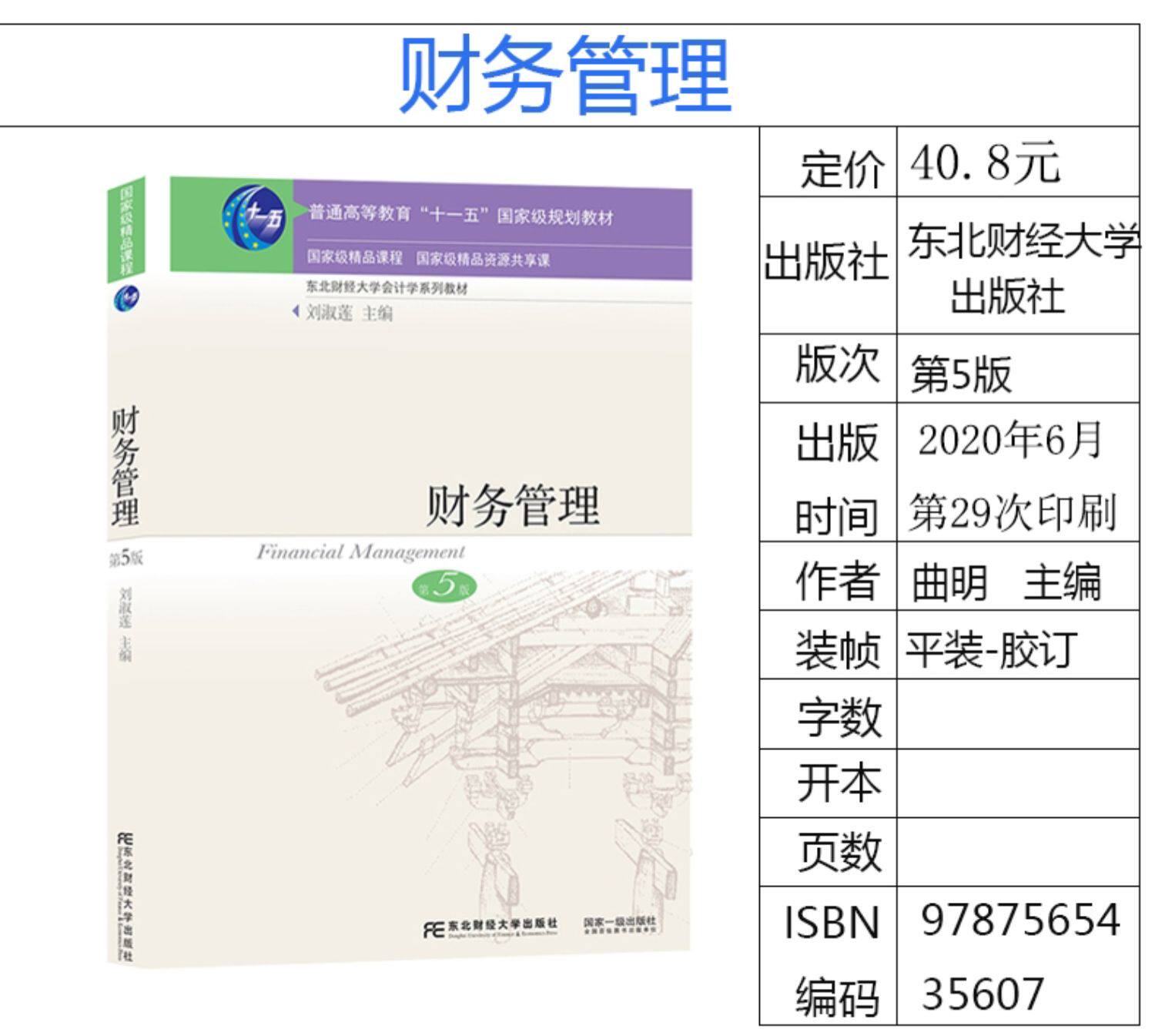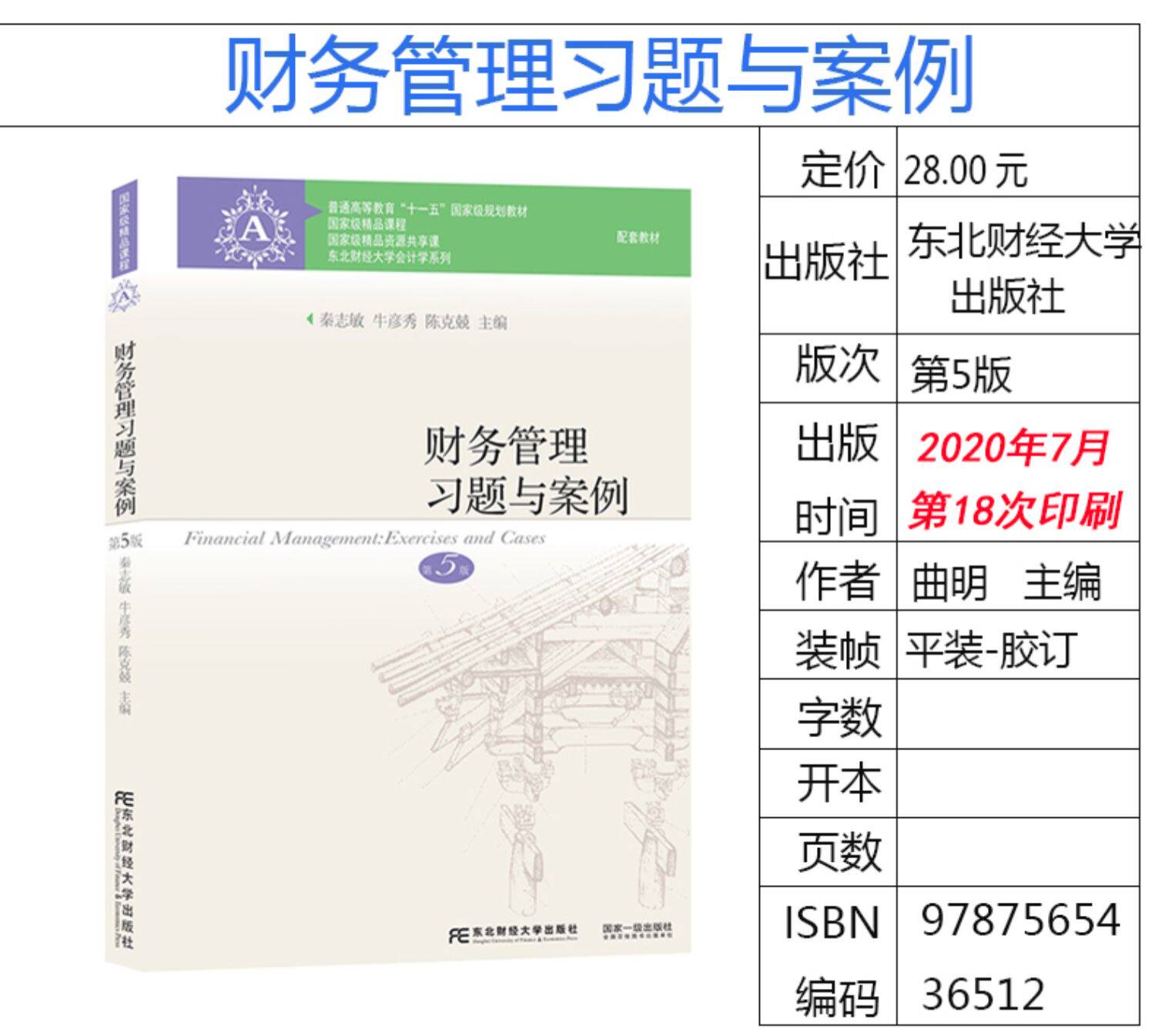 Подлинная и точечная скорость выпуска скорости в июне 2020 года 29 -й учебник по управлению финансами печати (5 -е издание). Упражнение и дело Пятое издание Liu Shulian Редактор -в северо -восточном издательском доме Finance and Economics с курсом по управлению финансовым управлением.