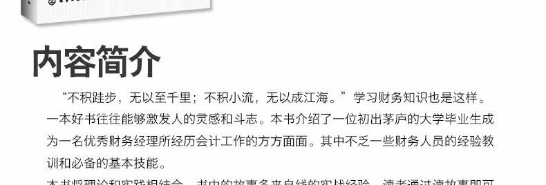 “ не накапливайтесь, нечего быть тысячами миль; не маленький поток, нет в реку.&Rdquo;Хорошая книга часто стимулирует вдохновение людей и боевой дух.В этой книге представлены все аспекты бухгалтерской работы, испытываемых выпускником колледжа, чтобы стать отличным финансовым менеджером.Среди них есть некоторые опытные уроки и основные навыки некоторых финансовых сотрудников.