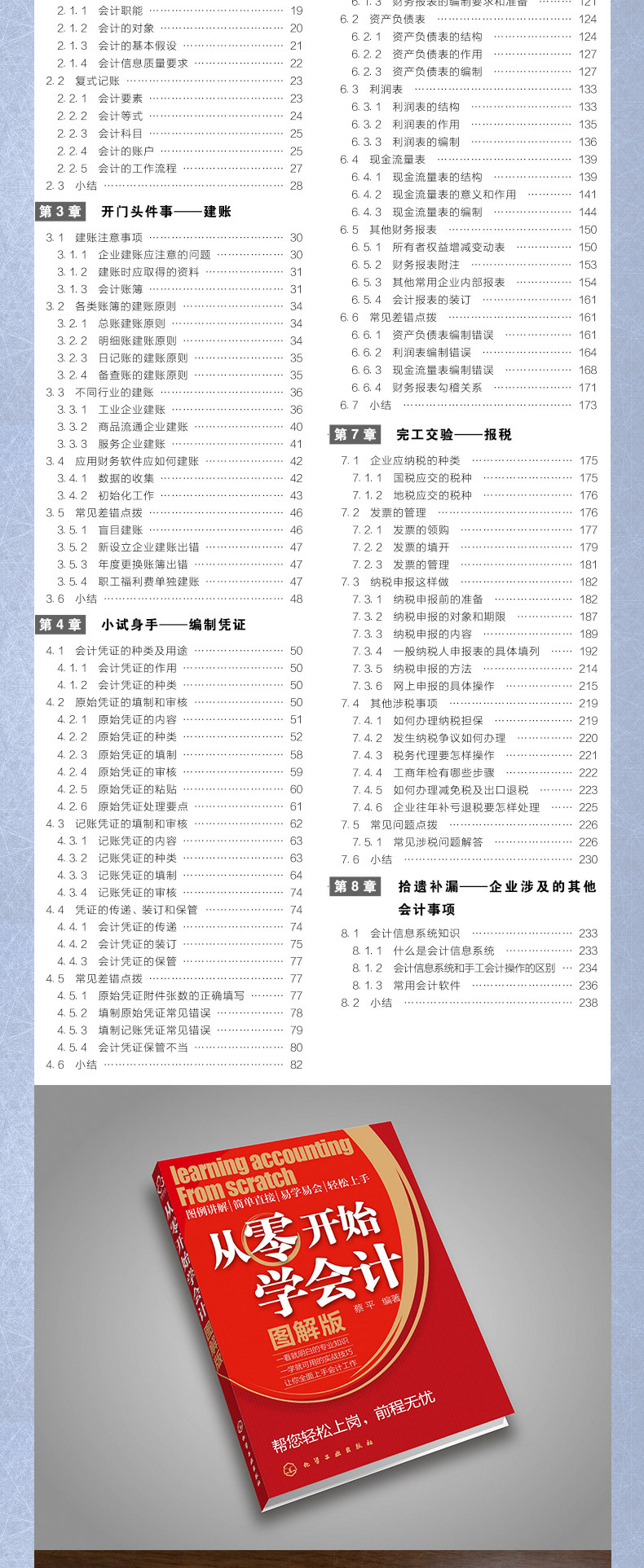 Эта книга разделена на три части. Глава с 1 по 3 является частью теории бухгалтерского учета, углубляет понимание читателя бухгалтерского учета, понимать общие концепции и основные методы бухгалтерского учета и сосредоточиться на объяснении основных моментов обработки корпоративного бухгалтерского учета; 4 -я глава 7 - раздел практики бухгалтерского учета. Это ключевая часть этой книги. Через большое количество диаграмм читатель пережил весь процесс предприятий из создания учетных книг, подготовленных ваучеров, регистрационных книг для подготовки бухгалтерских отчетов. Работа основана на этом, и на нее можно полагаться.