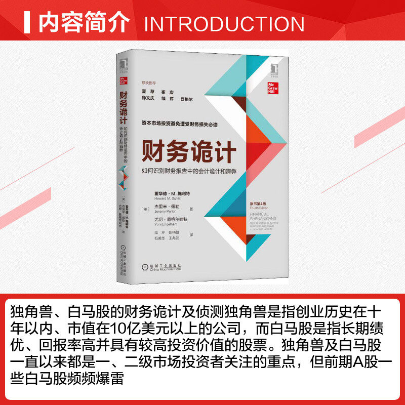 Финансовые уловки и обнаружение единорогов единорогов и белых лошадей относятся к компаниям с историей предпринимателей в течение десяти лет, а рыночная стоимость более 1 миллиарда долларов США. и высокая инвестиционная стоимость.Акции единорога и белых лошадей всегда были в центре внимания инвесторов первого и вторичного рынка, но некоторые запасы белых лошадей в раннем периоде акций часто взорвались, и единорог также был уменьшен до“Ядовитый зверь”Полем Как предотвратить и обнаружить мошенничество с акциями единорога и белых лошадей, стало сложной проблемой, о которой интересуется отрасль.4 -е издание «Финансового гнев» учит вас, как определить учет бухгалтерского учета и мошенничества в финансовых отчетах.Эта книга содержит более 110 небольших финансовых хитростей, в том числе много обманчивых случаев финансовой отчетности за последний квартал века, в том числе многие компании по единорогам и компаниям, занимающимся фондовыми акциями, такие как Hanergy Film, перечисленные на Гонконгской фондовой бирже.Автор «финансовой схемы» считает, что транзакции между Hanergy Film и материнской компанией не хватает сущности справедливых сделок.
