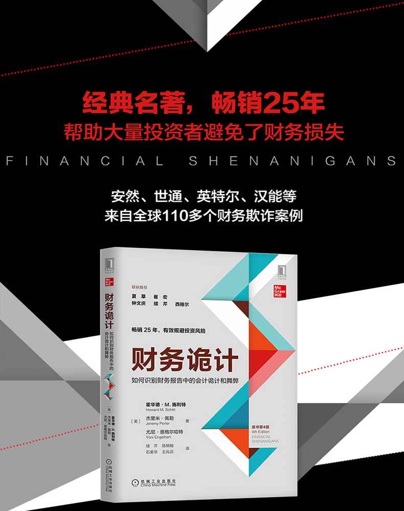| Оглядываясь назад на последние 25 лет Дорогие друзья: Недавно я только что закончил их 65 -й день рождения, рассмотрев свою прошлую жизнь и много изменений за 25 лет после публикации первого издания 1 -го издания первого издания первого издания «Финансового счетчика».Короче говоря, я чувствую себя очень счастливым.Что касается моей личной жизни, мы с женой любим проводить время с тремя внуками, и мы с нетерпением ждем рождения четвертого внука.Что касается моей карьеры, я очень рад, что могу быть с моим партнером и автором этой книги.&Middot; Джереми Перлер и Юни&Middot; В дополнение к исследовательской работе для клиентов, мы также потратили много времени на обучение соответствующим знаниям в области бухгалтерского учета юридического учета от инвесторов, регуляторов, журналистов и аспирантов.После недавней выступления в Университете Стэнфордского университета я и мои спутники поняли, что она прошла 7 лет с момента публикации «Финансового юлу» Первое издание «Финансового тривиального», оно прошло почти 25 лет.В течение этого периода более 100 000 читателей по всему миру купили эту книгу, в том числе китайские, японские и корейские версии переводов.Мы многому научились в последние годы, поэтому мы считаем, что мы должны поделиться последними финансовыми хитростями с читателями, а также самым важным опытом и уроками, которые мы выучили в последнем 1/4 века. Но прежде чем открыть последнее издание «Financial Julu», давайте проталкиваем часы на 25 лет и помните, как отслеживать финансовые уловки в этом году. Это действительно удивительное и захватывающее путешествие с 1990 года. В начале 1990 -х годов началось путешествие Будучи профессором бухгалтерского учета в Американском университете в Вашингтоне, я начал изучать знаменитые случаи мошенничества в бухгалтерском учете, которые произошли за последние 40 лет. . (AAER).После этого я начал использовать эти очень интересные небольшие дела на своих промежуточных финансовых курсах и аудиторских курсах для обучения.Я обнаружил, что студенты думали, что эти случаи были очень привлекательными, поэтому я начал писать и публиковать статьи на тему, чтобы поделиться с большим количеством читателей.Естественно, следующим шагом дальнейшего расширения группы читателей является публикация книг. «Financial Julu» издательство и ранняя предпринимательская стадия Вскоре после моего 41 -го дня рождения, в начале 1993 года издательская компания McGram опубликовала первое издание «Финансового журнала».В этой книге представлены семь типов манипуляций из профицита читателям, определяют 20 различных методов манипуляции с управлением и перечисляют многие реальные компании, которые были наказаны для обмана инвесторов. После того, как эта книга была опубликована, были некоторые сюрпризы.Прежде всего, многие читатели поблагодарили меня, потому что содержание в книге рассказывает им, какие меры можно принять для защиты их богатства.Во -вторых, эта книга привлекла внимание некоторых крупных институциональных инвесторов. Они попросили меня прочитать лекции своим аналитикам, чтобы помочь этим аналитикам определить эти компании, играющие в бухгалтерские игры.Они также пригласили меня помочь компании в инвестиционном портфеле.К счастью, несколько раз я использовал эти методы, чтобы напомнить им о основных проблемах, с которыми они мо