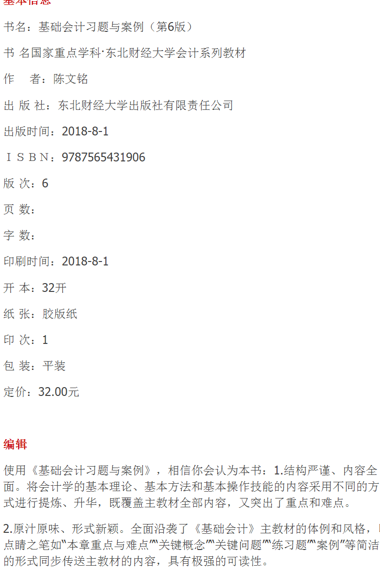 Основной бухгалтерский бухгалтер. 6 -е издание Цена: 36,8 Юань