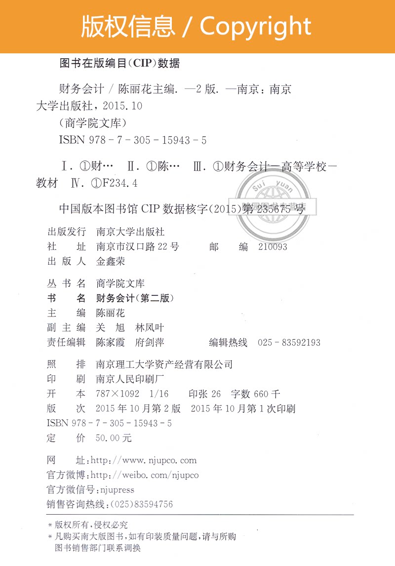 Подлинный финансовый бухгалтерский учет/доставка студентов Ранее серия Chen Lihua Nanjing University Press 2010